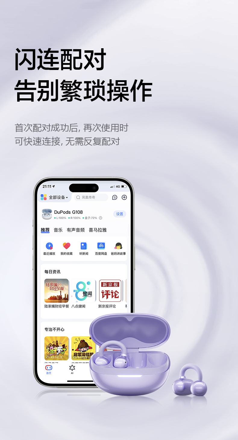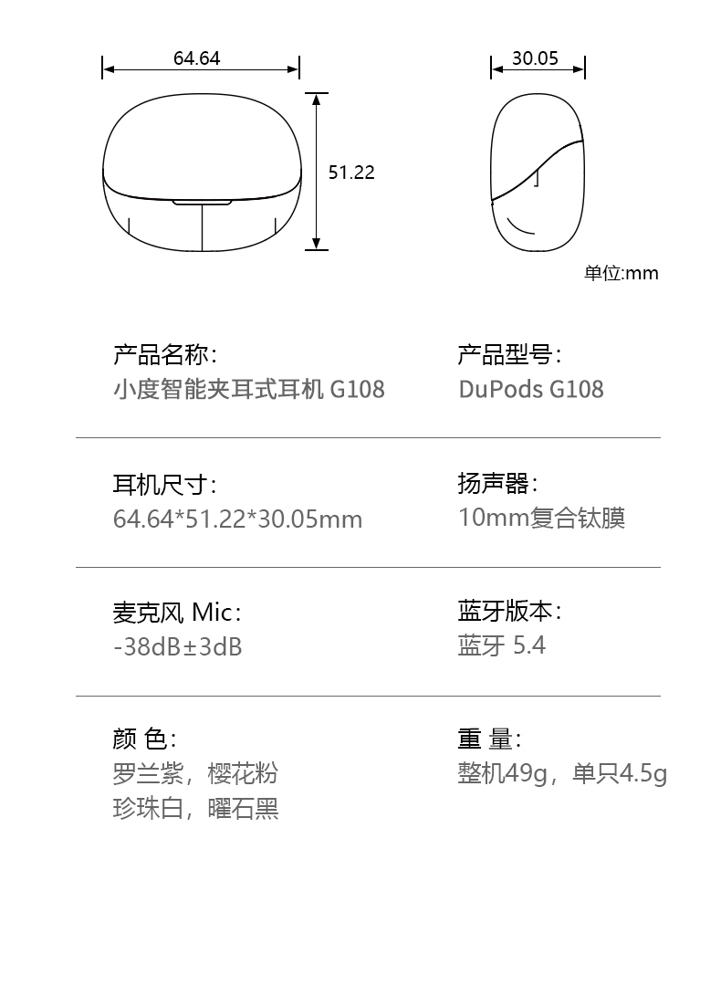 商品名称:小度潮流耳夹式无线蓝牙耳机G108