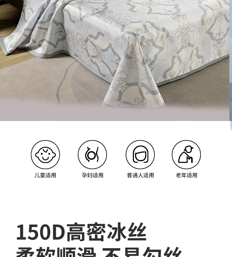 商品名称:【顺丰配送】恒源祥欧式典雅冰丝凉席三件套230*250cm