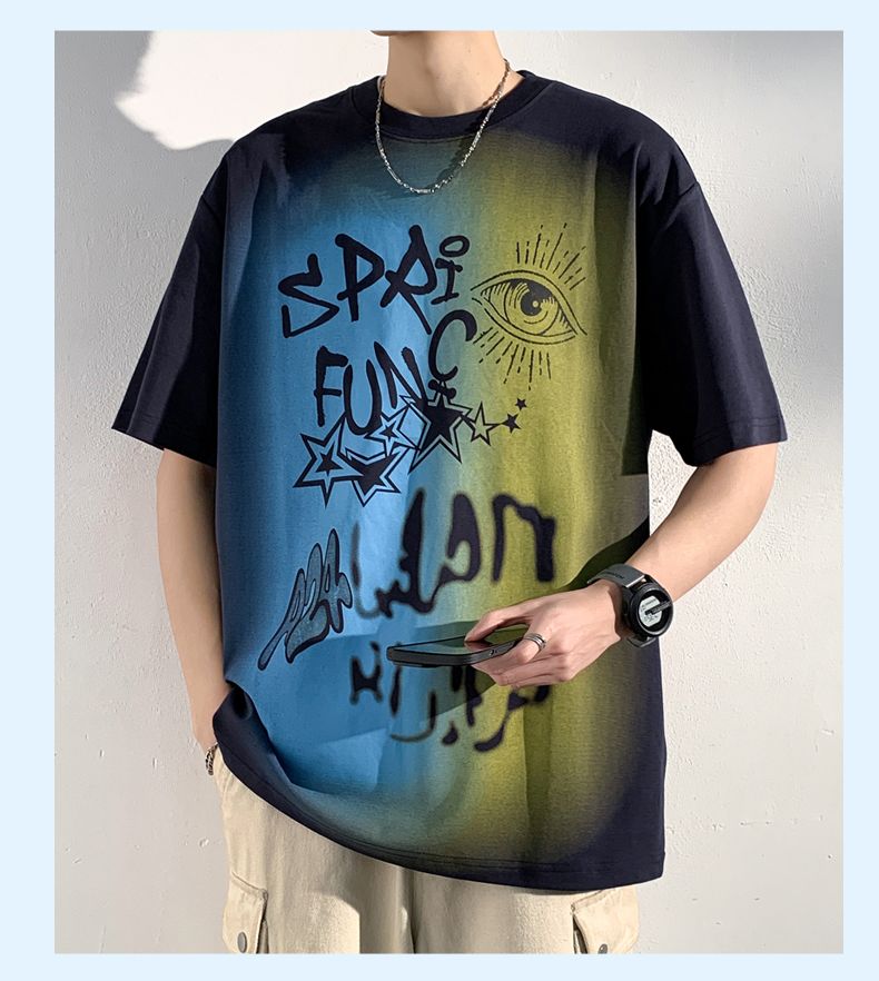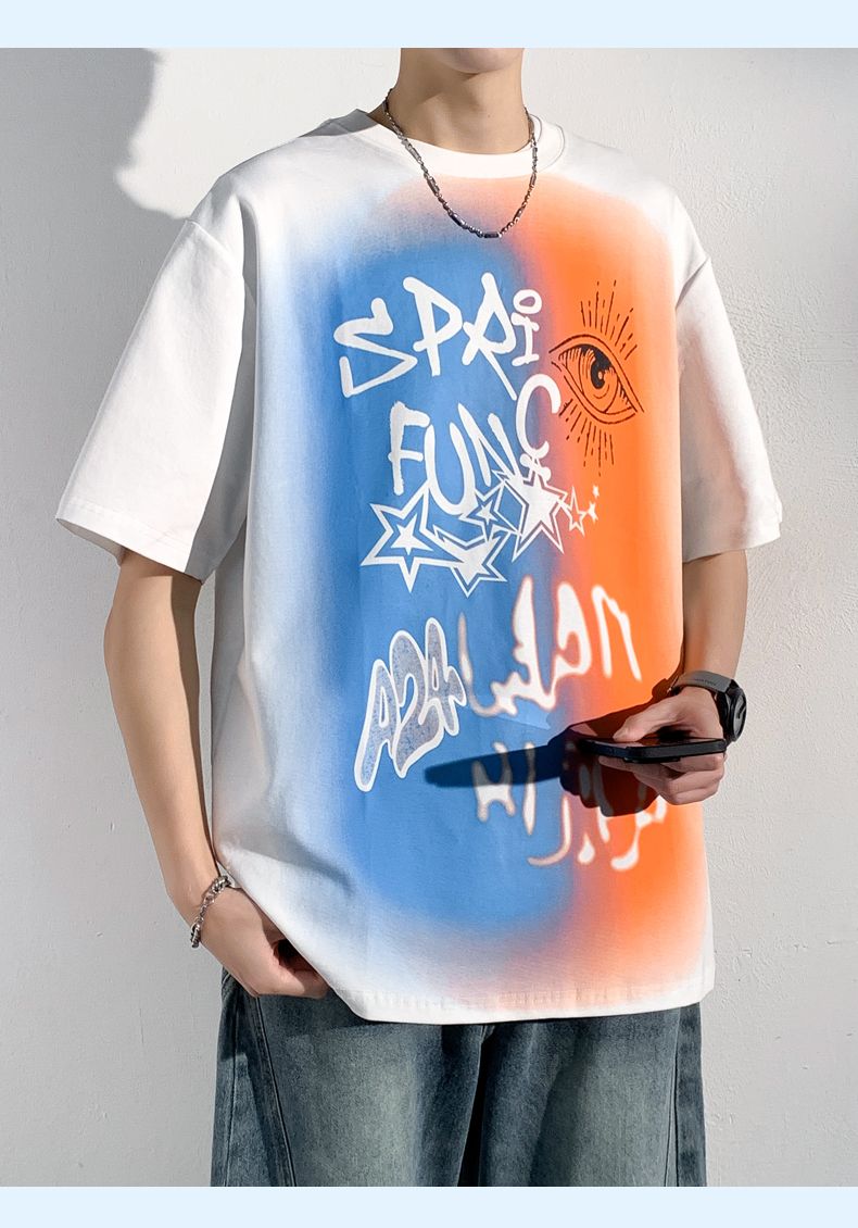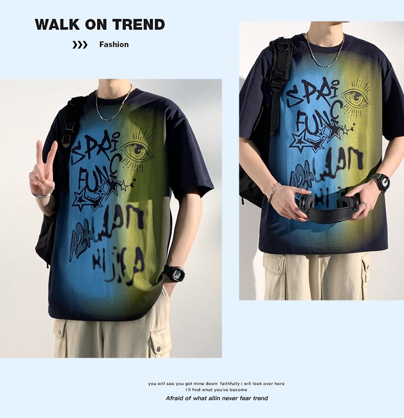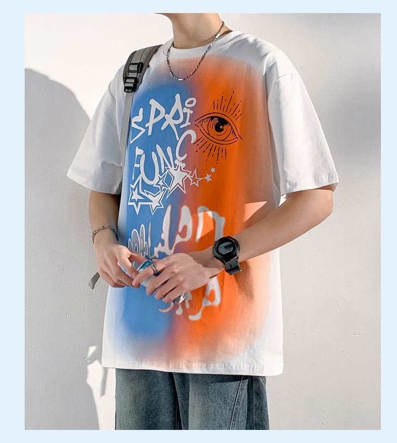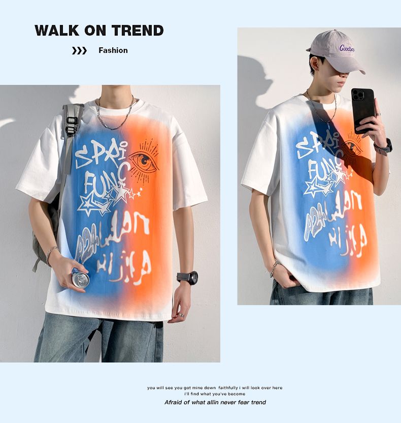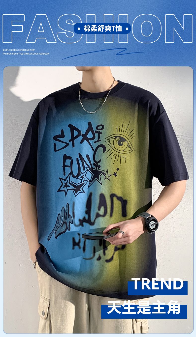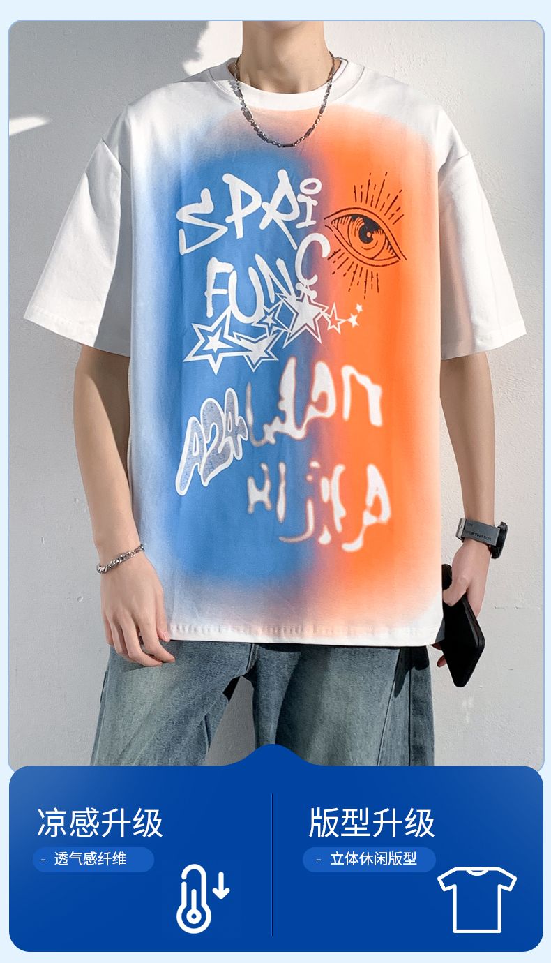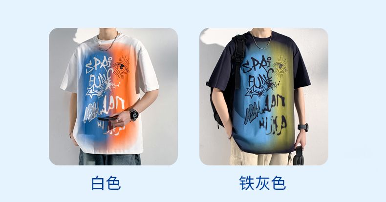 商品名称:型煜 短袖T恤男夏装新款宽松休闲创意拼色印花情侣装