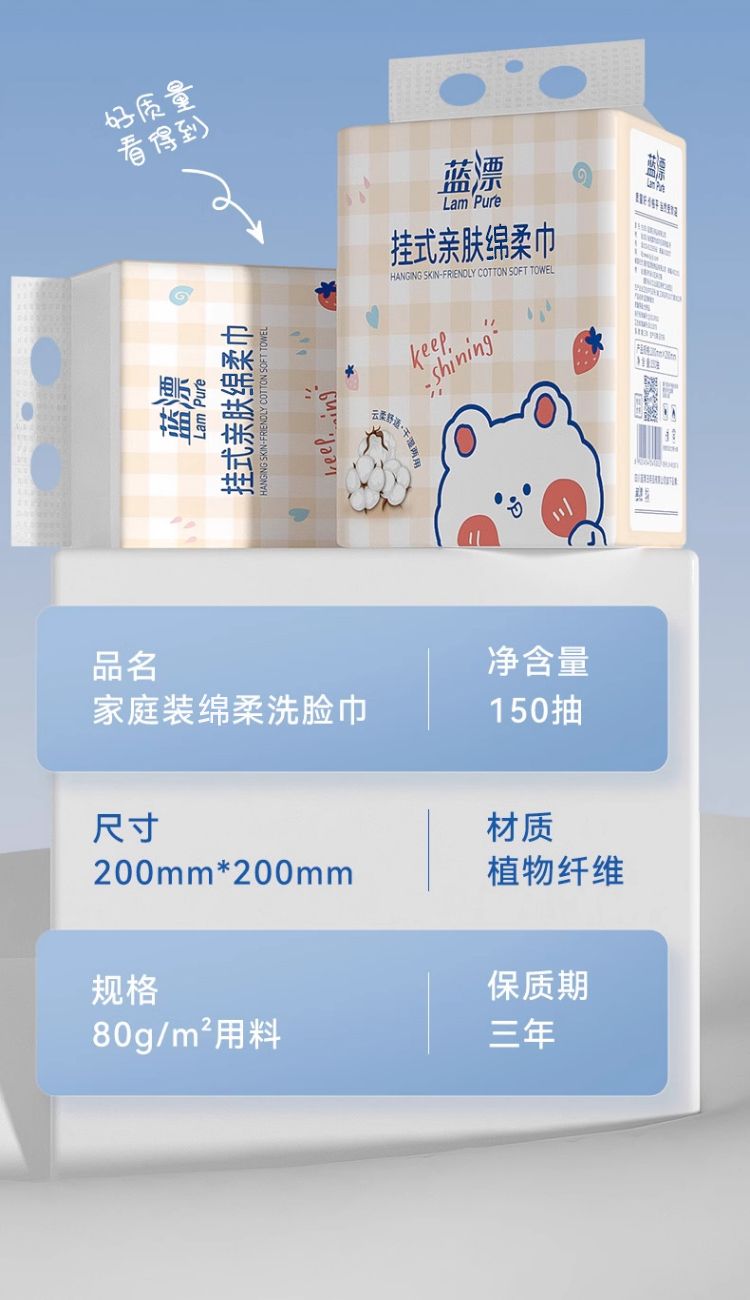 商品名称:蓝漂 萌宠悬挂式棉柔巾1包装