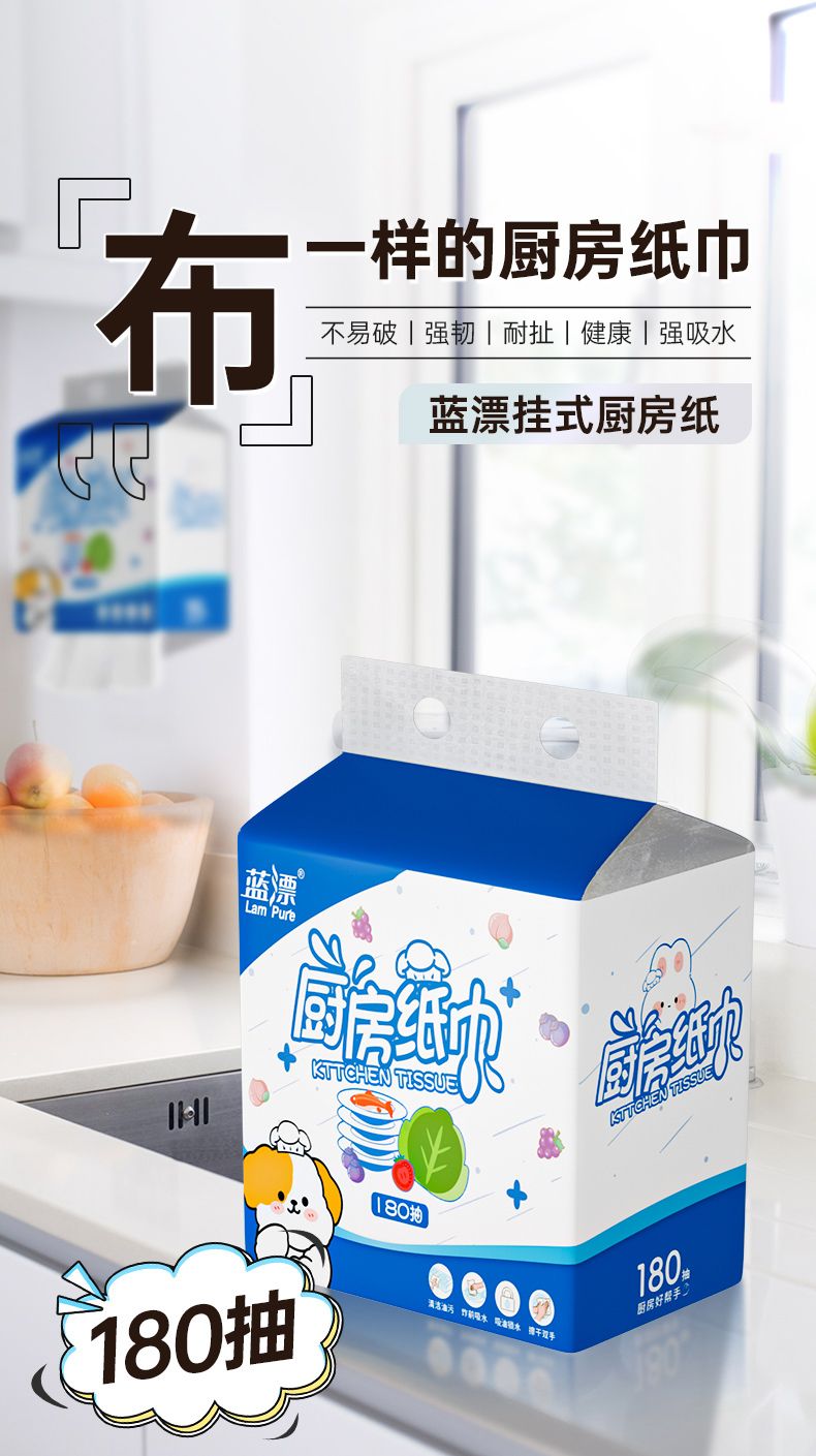 蓝漂 白色多功能厨房挂式抽纸1提装