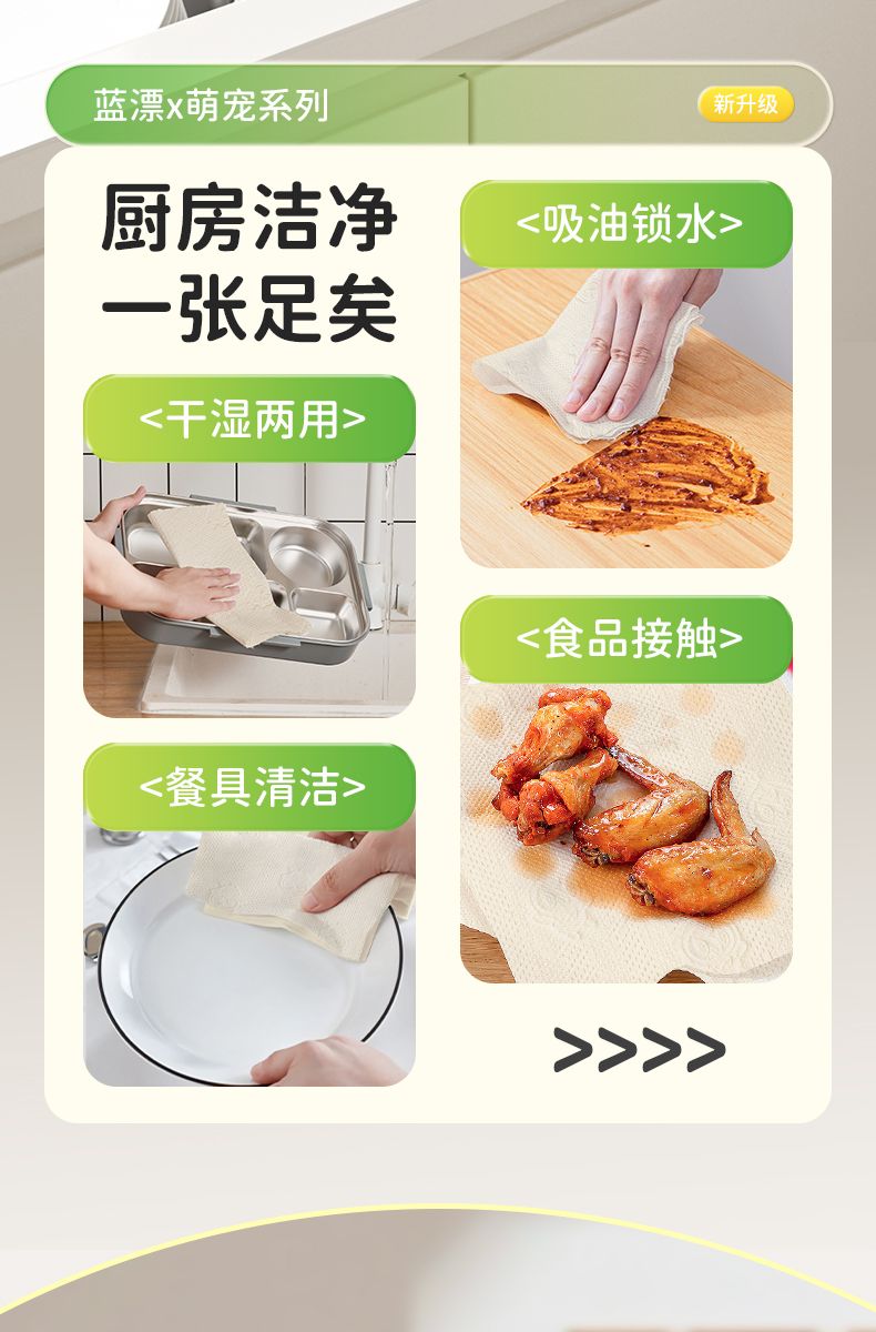 商品名称:蓝漂 厨房本色抽纸1包装(萌宠系列)