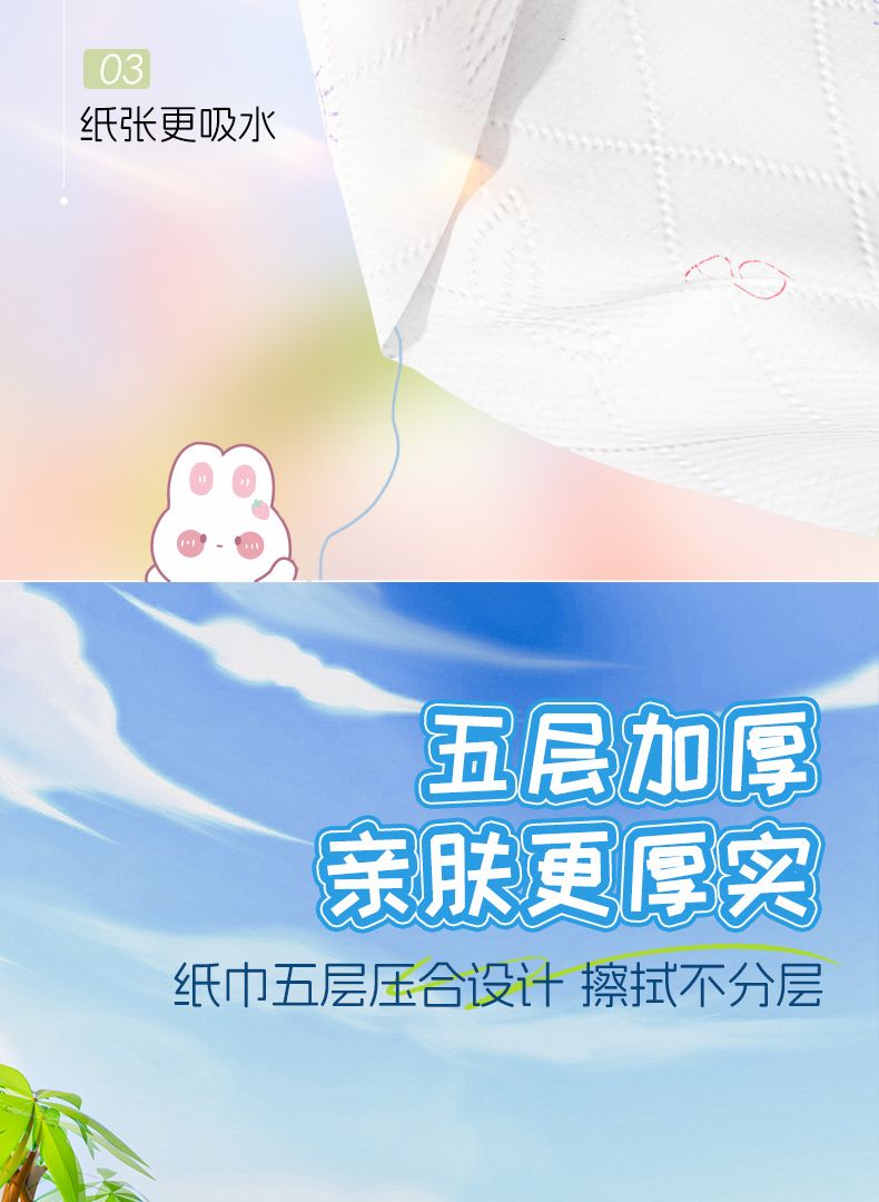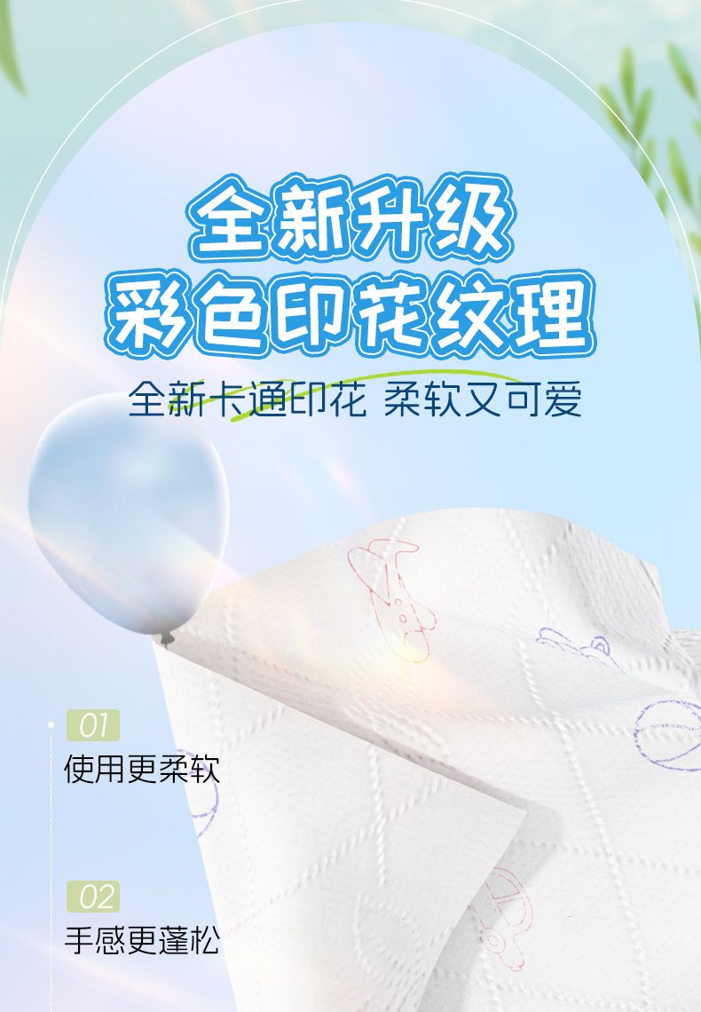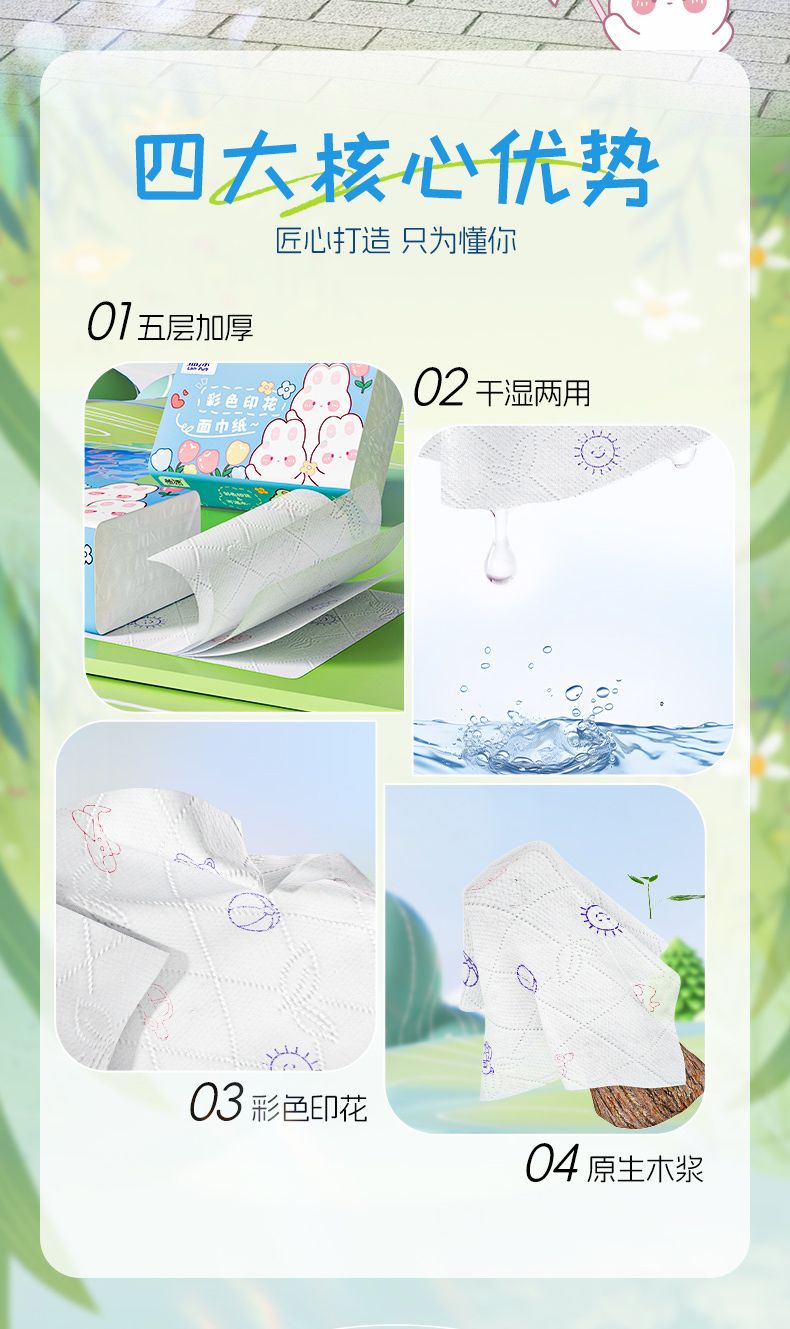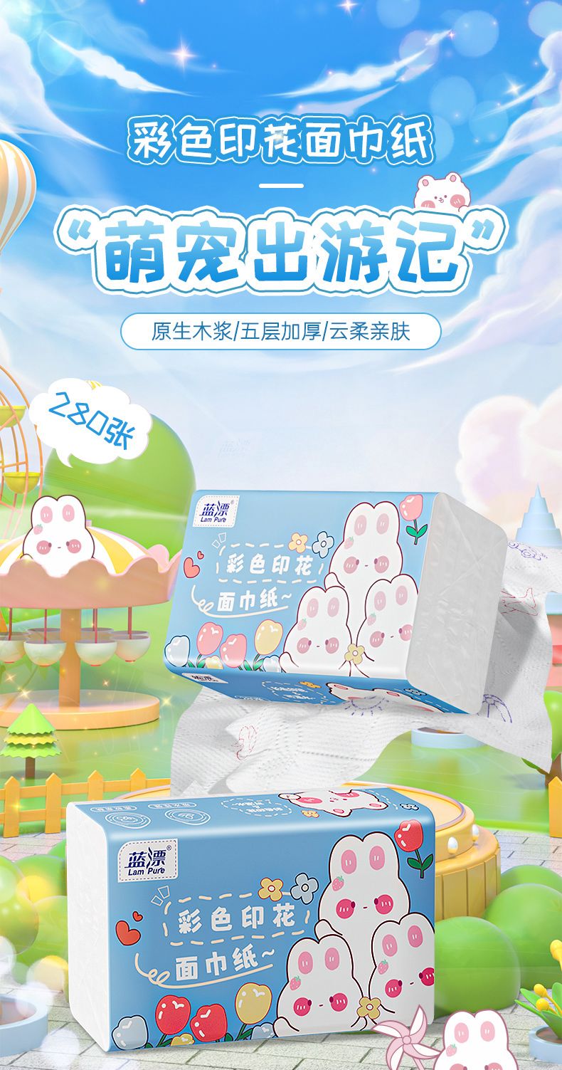 商品名称:蓝漂 可湿水彩色印花白色抽纸6包