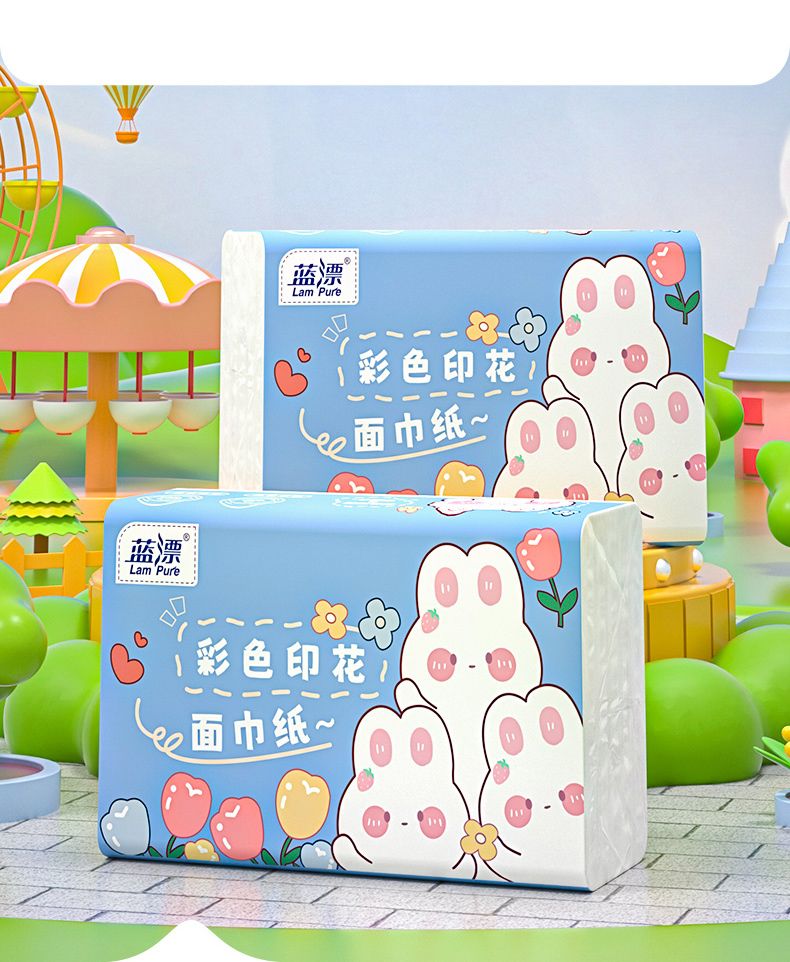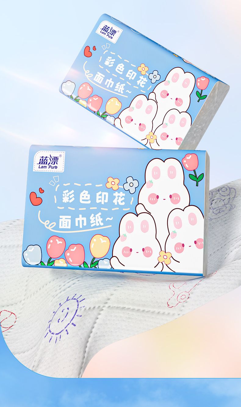 蓝漂 可湿水彩色印花白色抽纸6包
