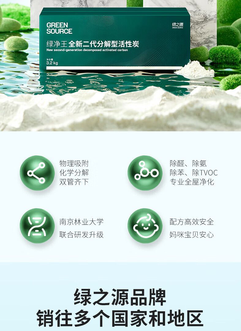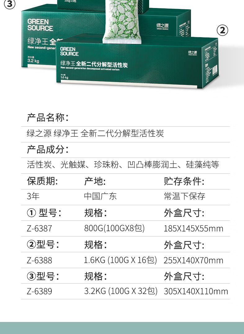 商品名称:绿之源 绿净王全新二代分解型活性炭 3.2kg Z-6389