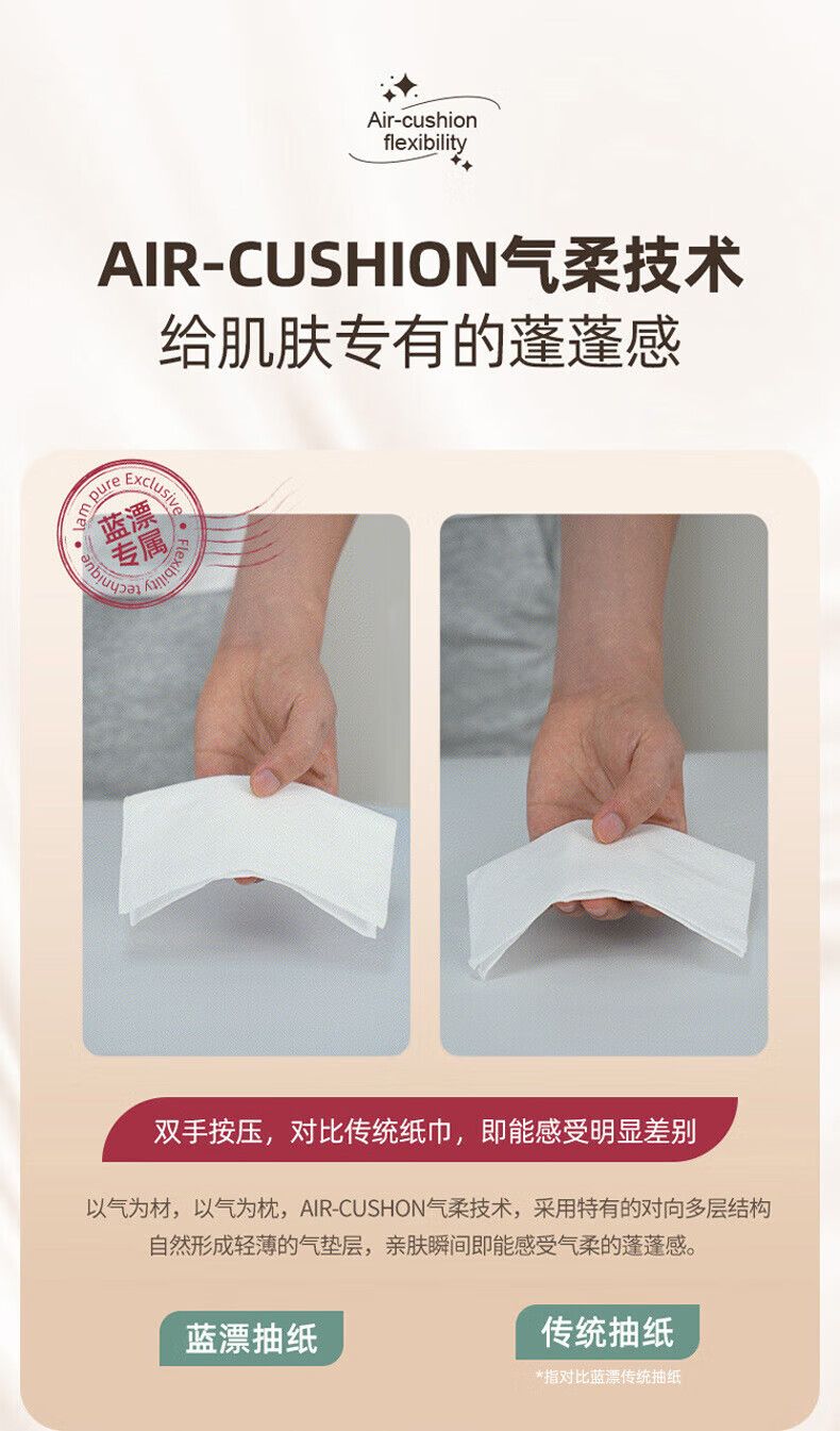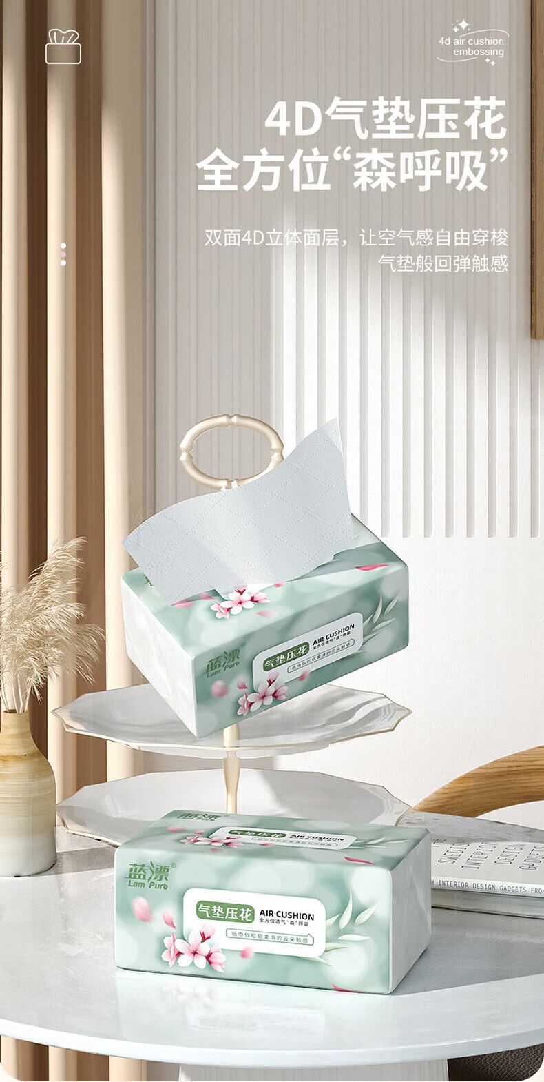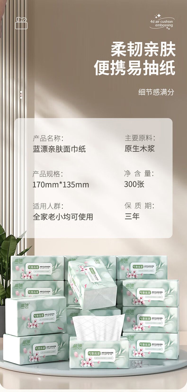 商品名称:蓝漂 白色气垫压花抽纸6包黑色提袋装