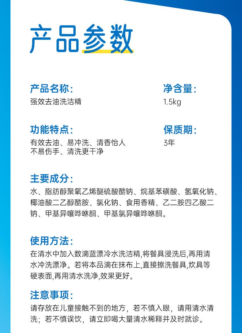商品名称:蓝漂 冷水去油洗洁精1.5kg圆瓶