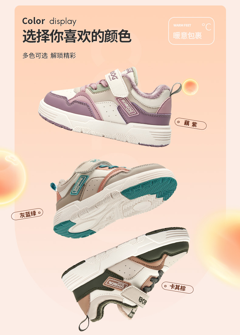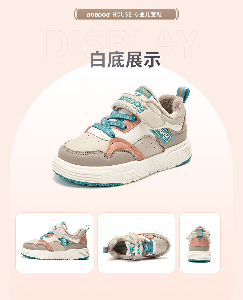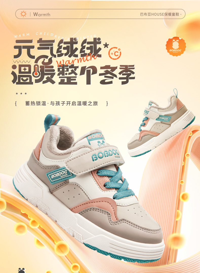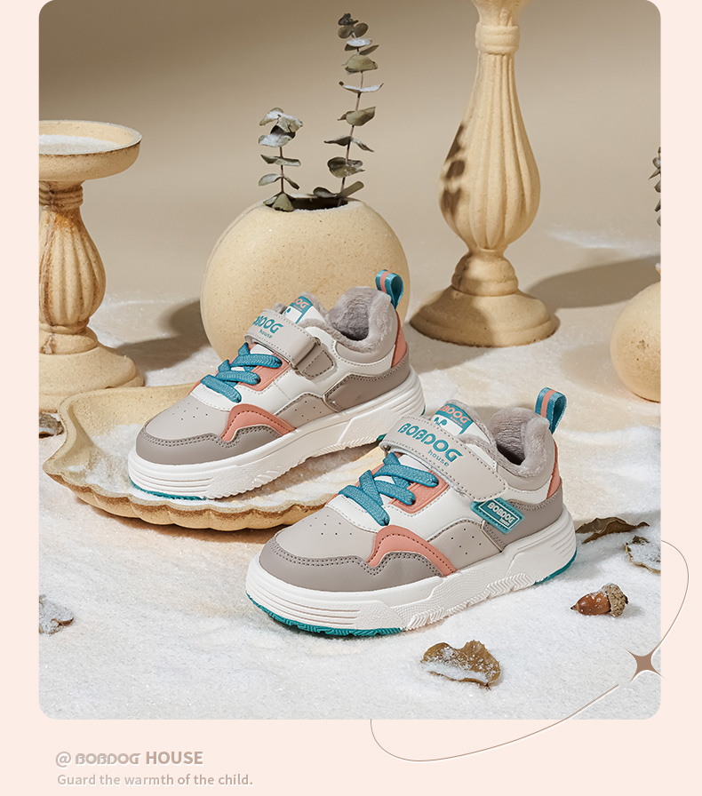商品名称:巴布豆house童鞋冬季新款中大童加绒加厚二棉鞋男童女童运动板鞋子