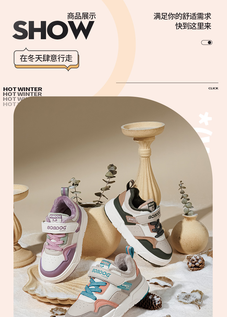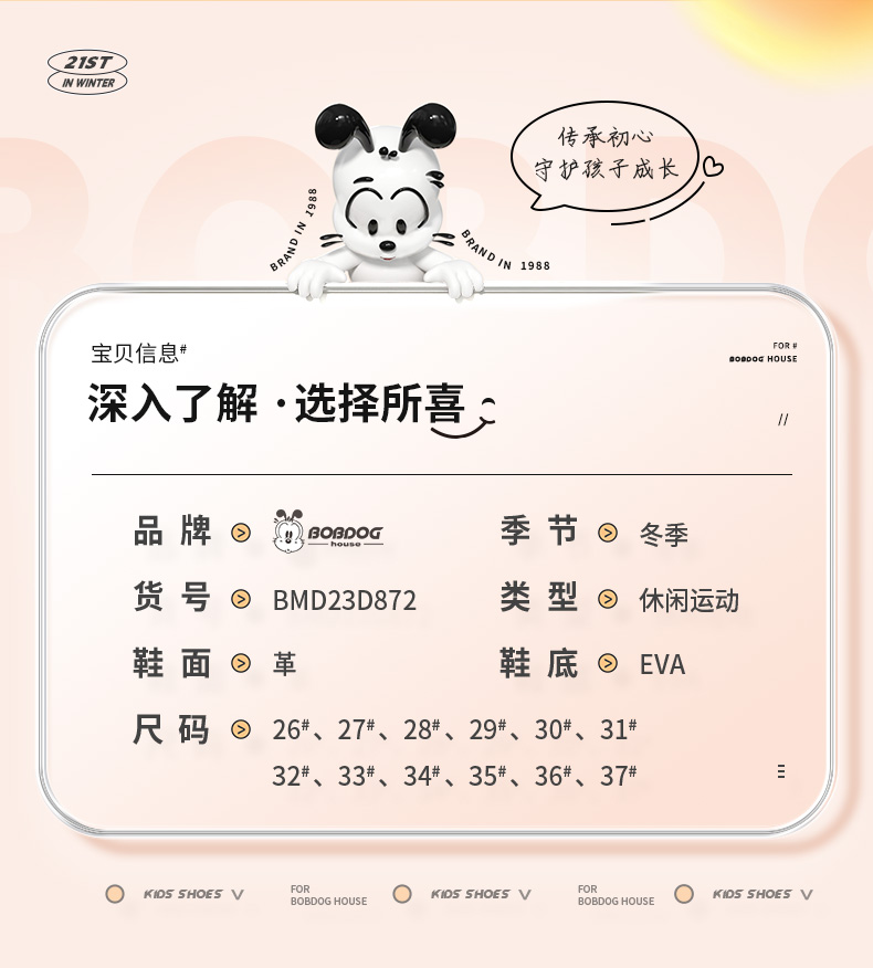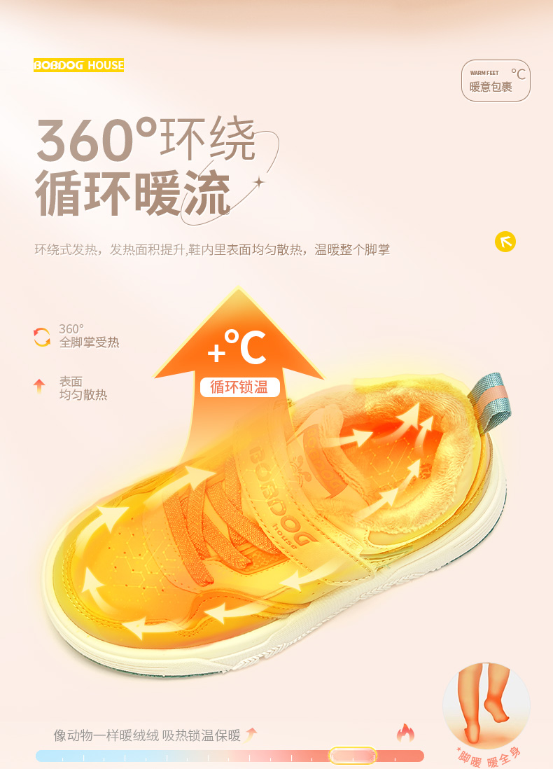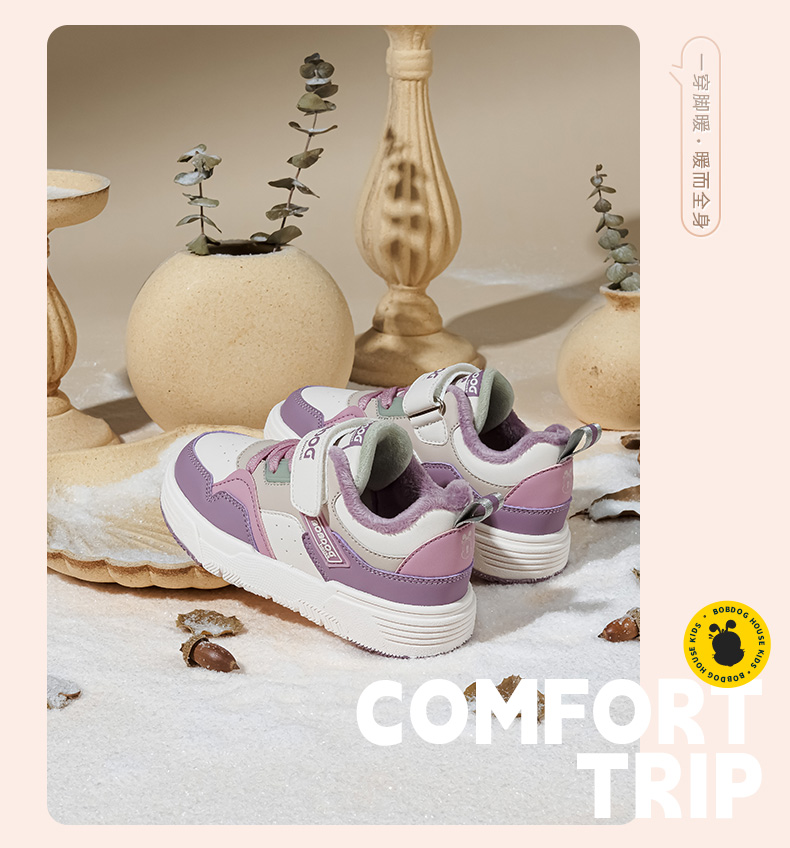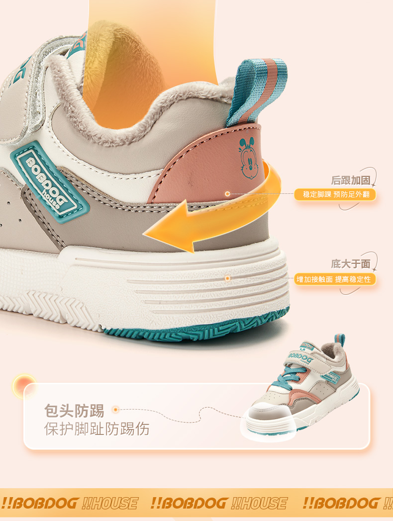 商品名称:巴布豆house童鞋冬季新款中大童加绒加厚二棉鞋男童女童运动板鞋子