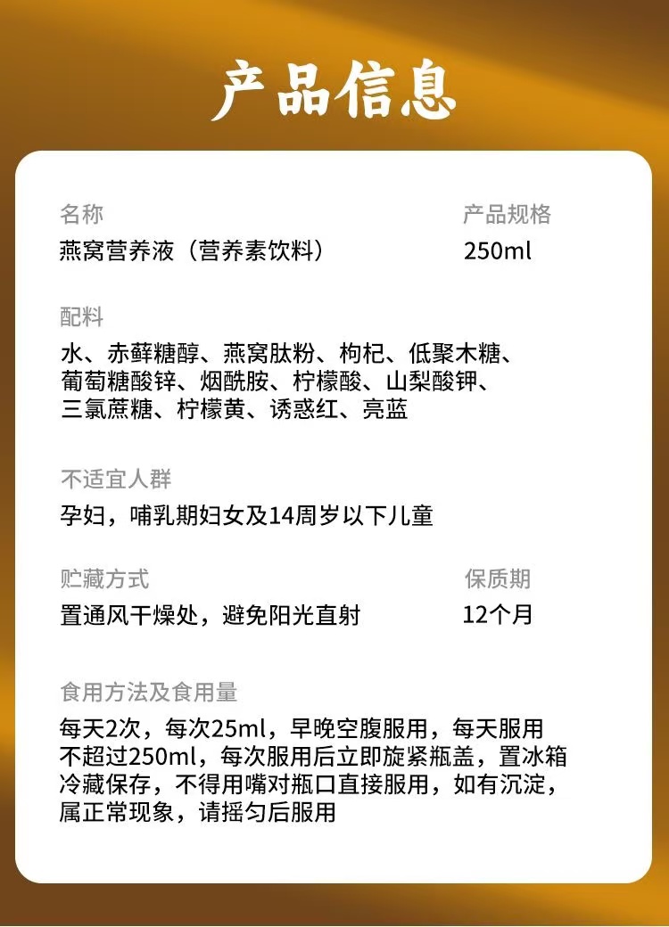 商品名称:脑白金年轻态燕窝营养液成人烟酰胺蛋白肽口服液营养素饮料250ml*2瓶礼盒装