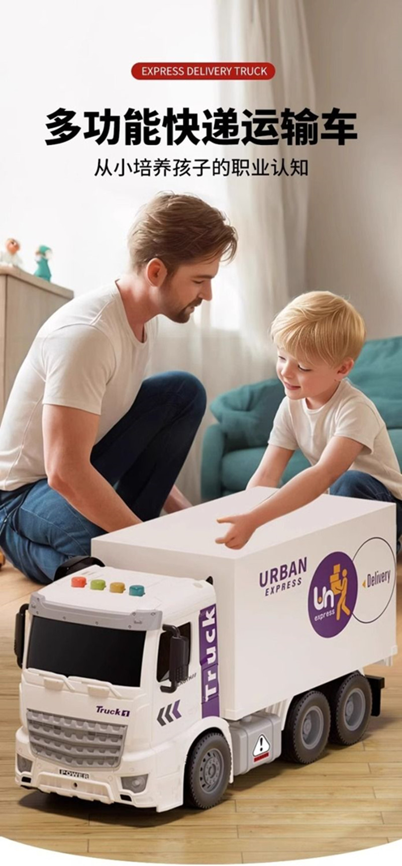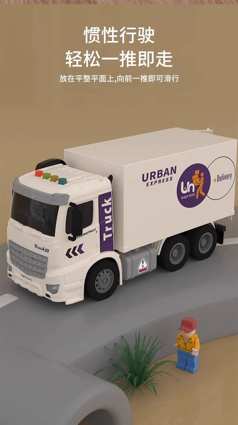 儿童益智惯性快递车玩具可开车厢门的货车灯光音乐工程车男孩1岁3