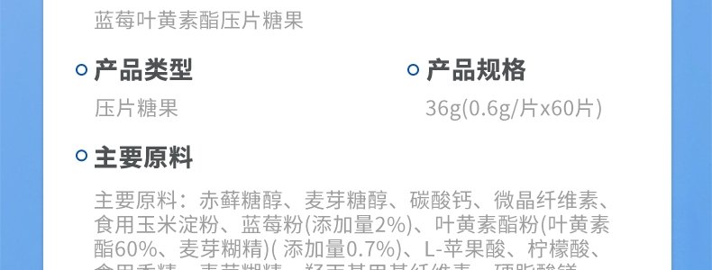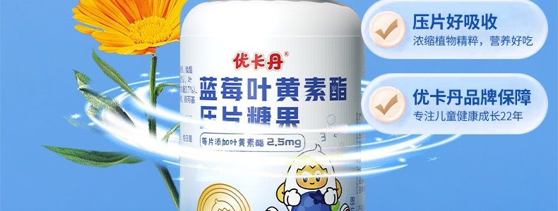 商品名称:优卡丹 蓝莓叶黄素酯儿童压片糖果 0.6g*60片/瓶