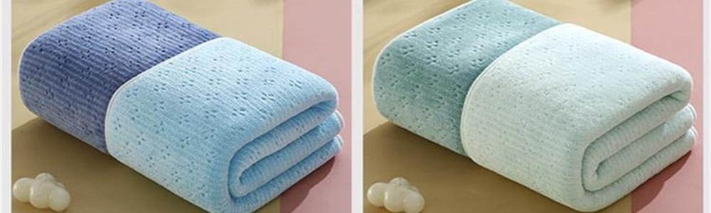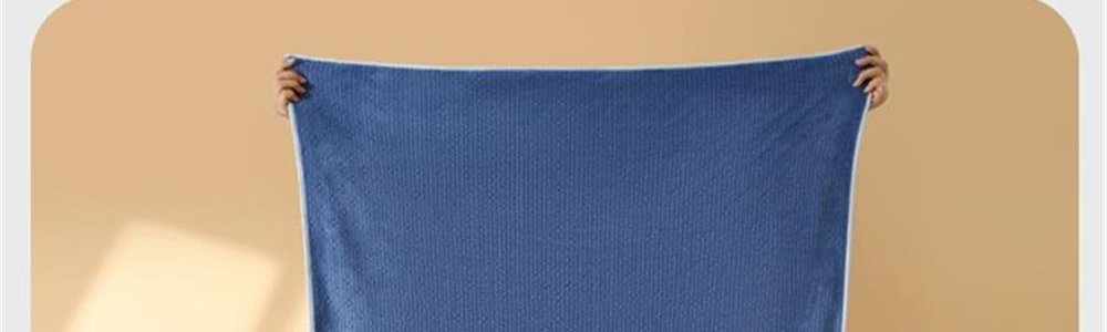 宜朵(YIDUO)清新竖条加大浴巾*1条(美容毯)两面颜色 沁柔蓝/锦灰蓝