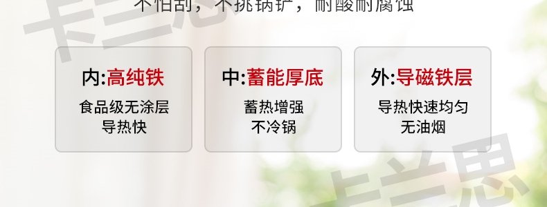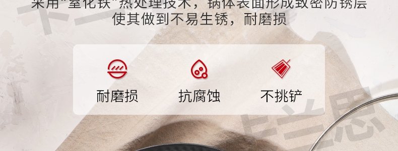 商品名称:卡兰思 黑钻极铁锅炒锅(带锅盖) 32cm