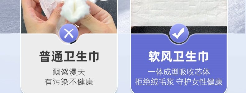 商品名称:软风研究社 至柔天鹅绒卫生巾 日夜组合装10包 (日用245mm5片*6包+日用180mm14片*1包+夜用290mm10片*1包+420mm4片*2包)