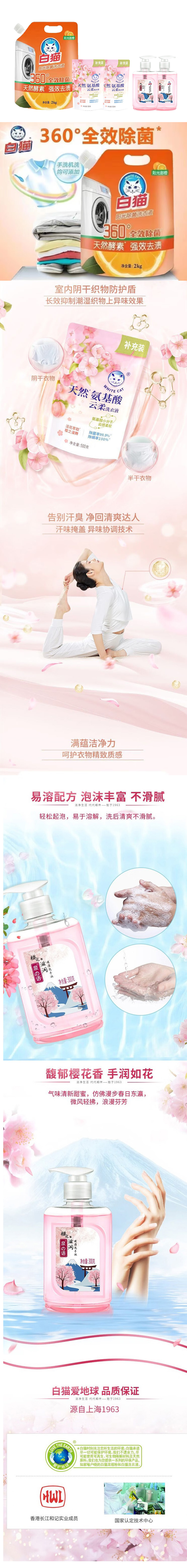 白猫 阳光除菌洗衣液2kg+天然氨基酸云柔洗衣液500g+泉の语樱花滋润健康洗手液300g