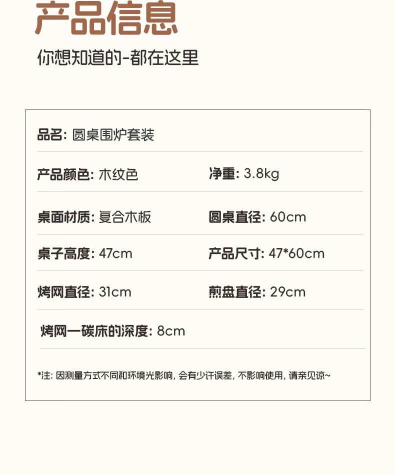 商品名称:【京东/顺丰配送】FTLY/飞图乐圆桌围炉套装-木纹色WLTZ0301