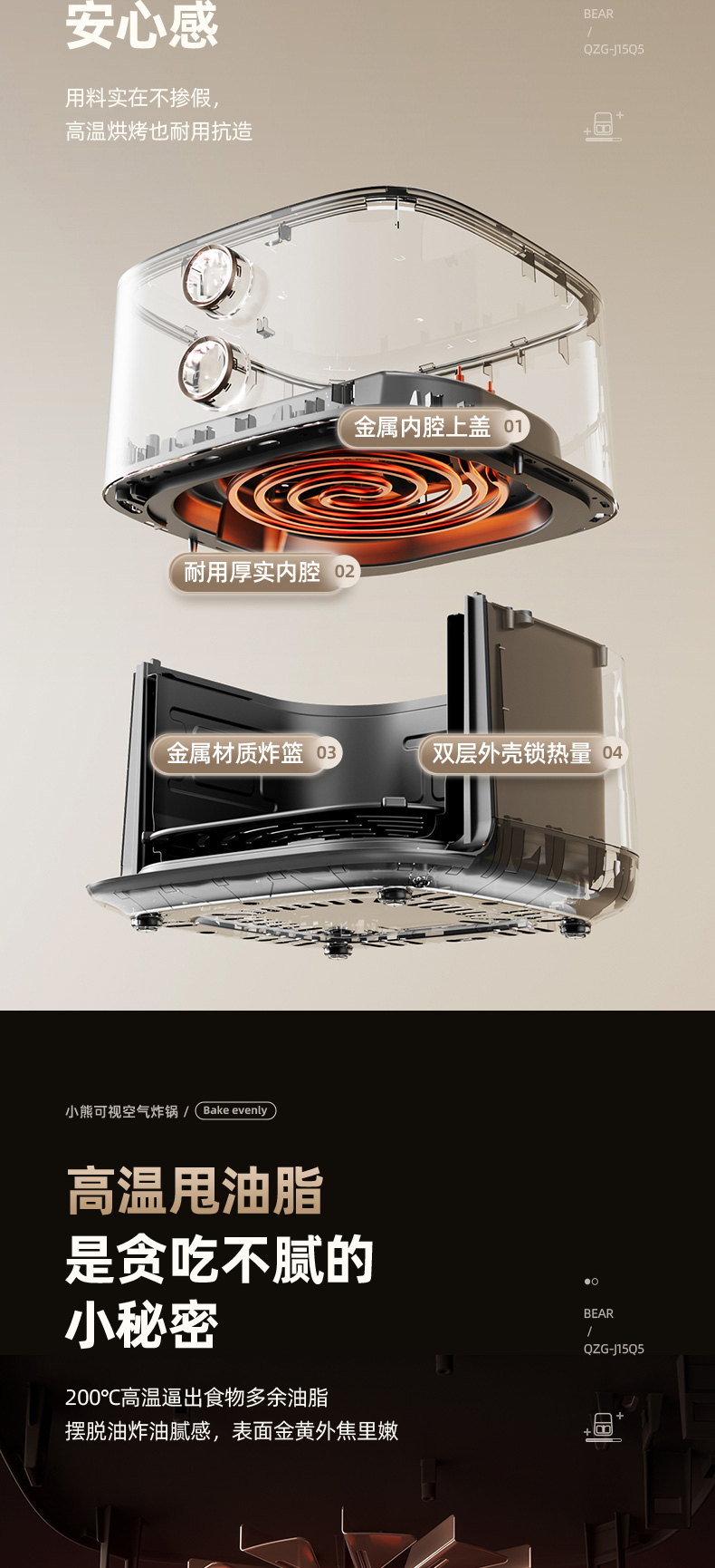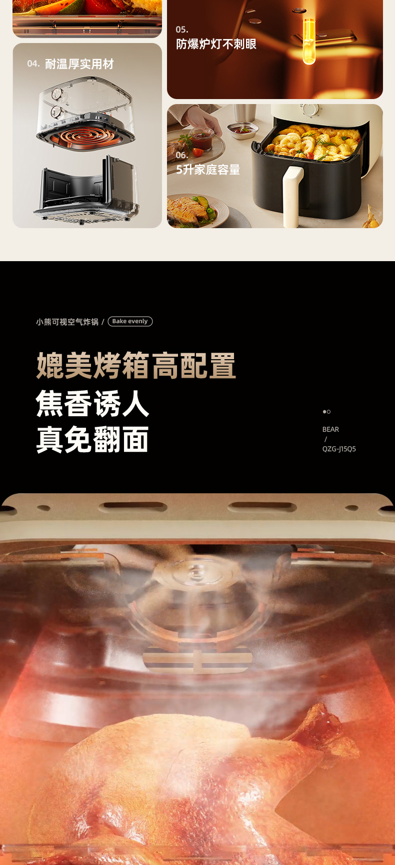 商品名称:Bear/小熊5L可视空气炸锅QZG-J15Q5
