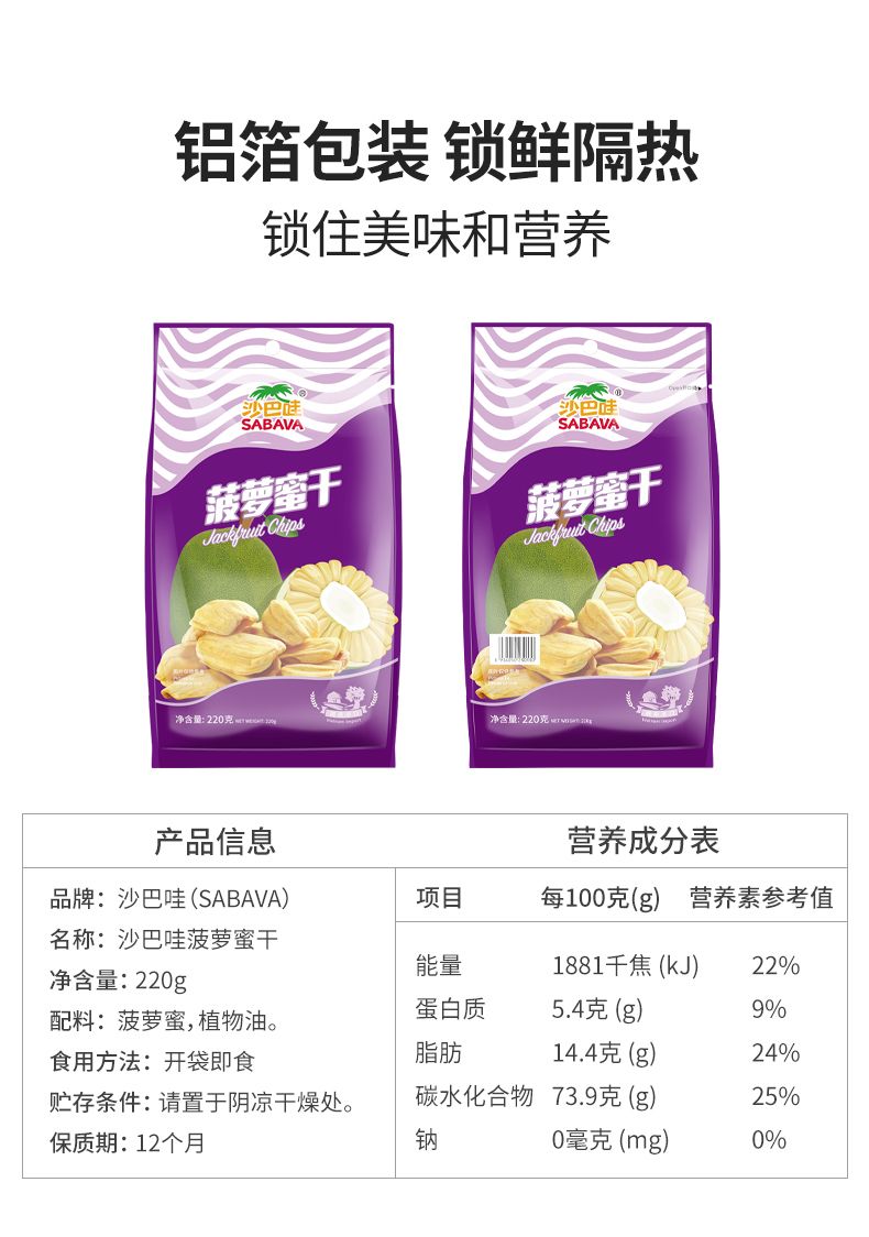 商品名称:沙巴哇进口菠萝蜜干220克