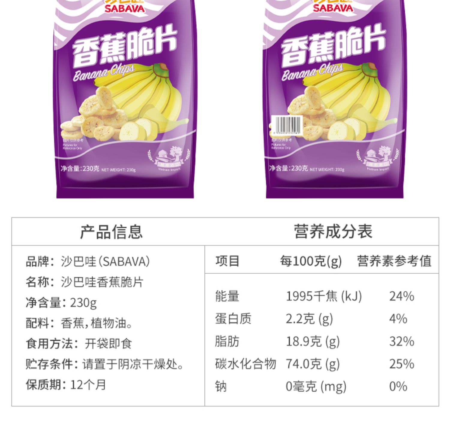 商品名称:沙巴哇进口香蕉脆片230g