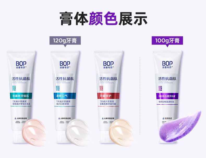 商品名称:BOP/波普专研活性抗菌肽色修牙膏