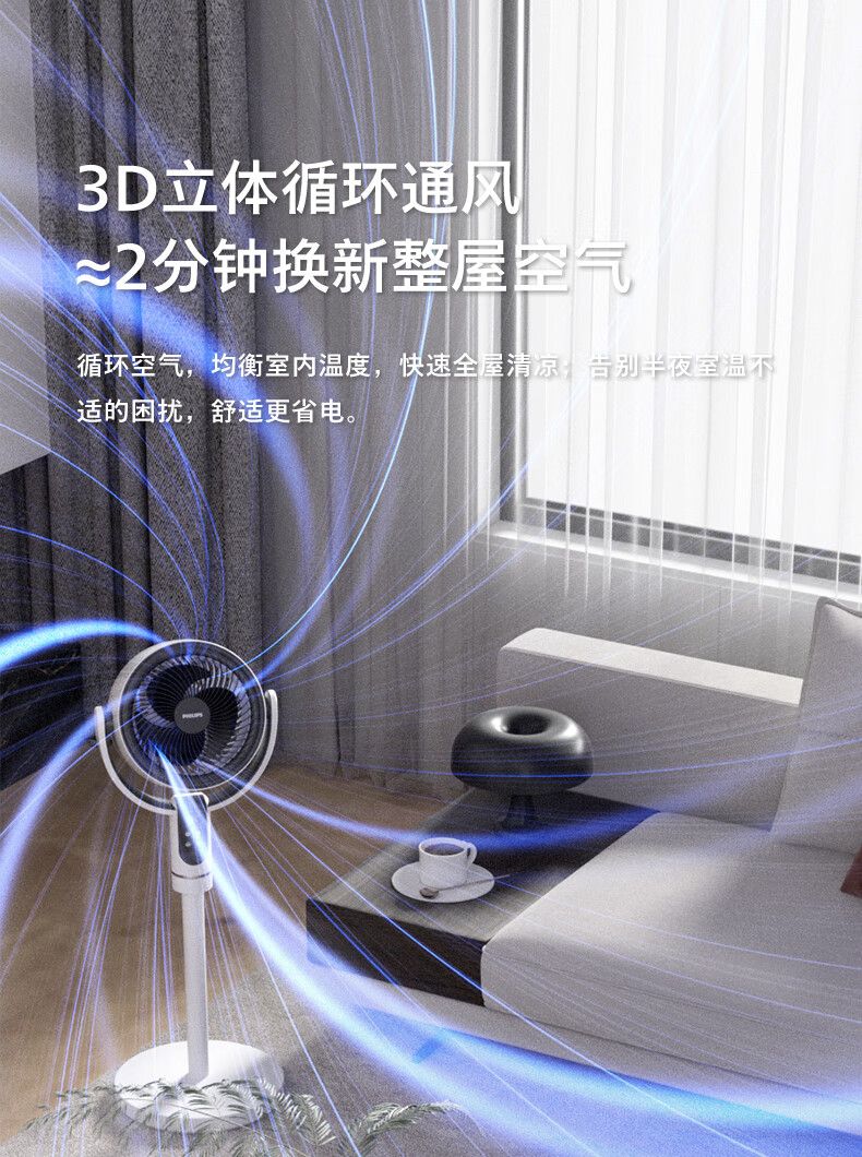 商品名称:飞利浦空气循环扇落地扇ACR2242CFD遥控款 3D自动摇头轻音节能小型电风扇 台地两用对流换气扇
