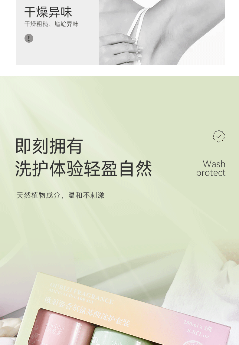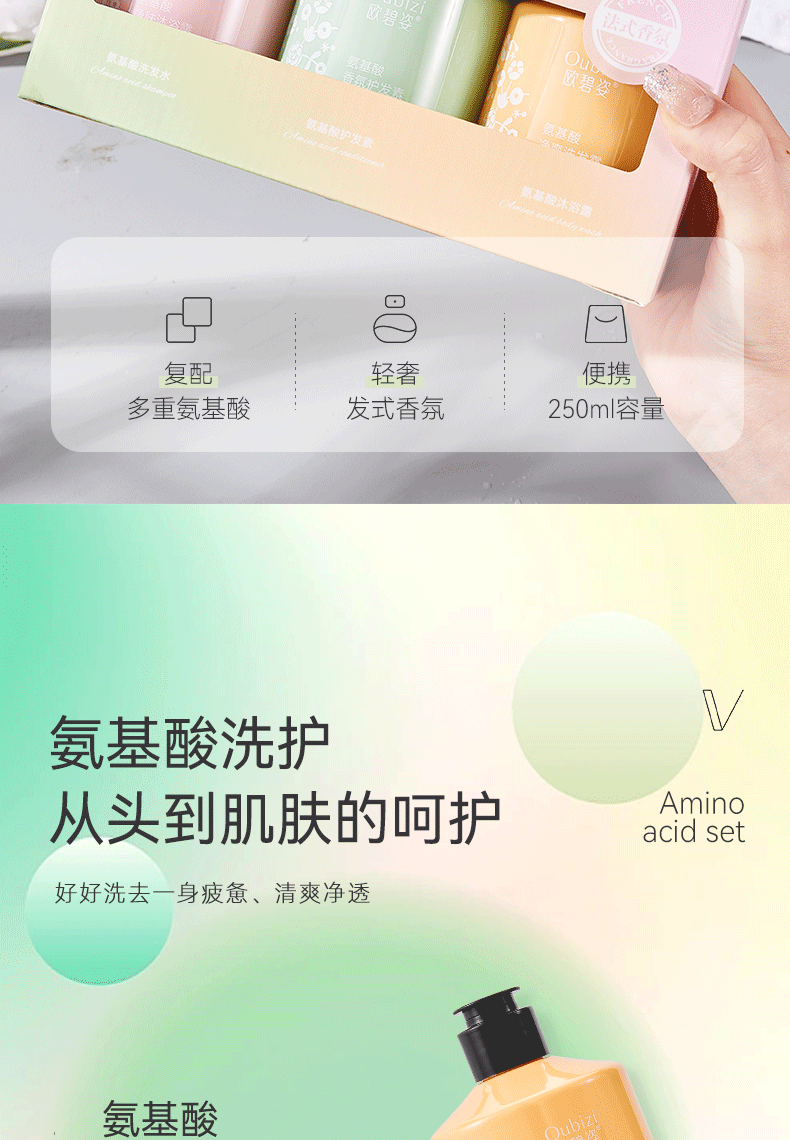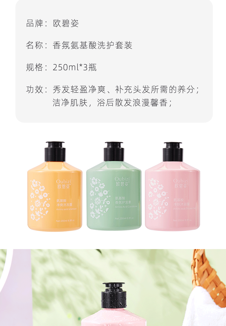商品名称:【3件套-包邮】欧碧姿香氛氨基酸洗护沐套装洗发水沐浴露护发素套盒