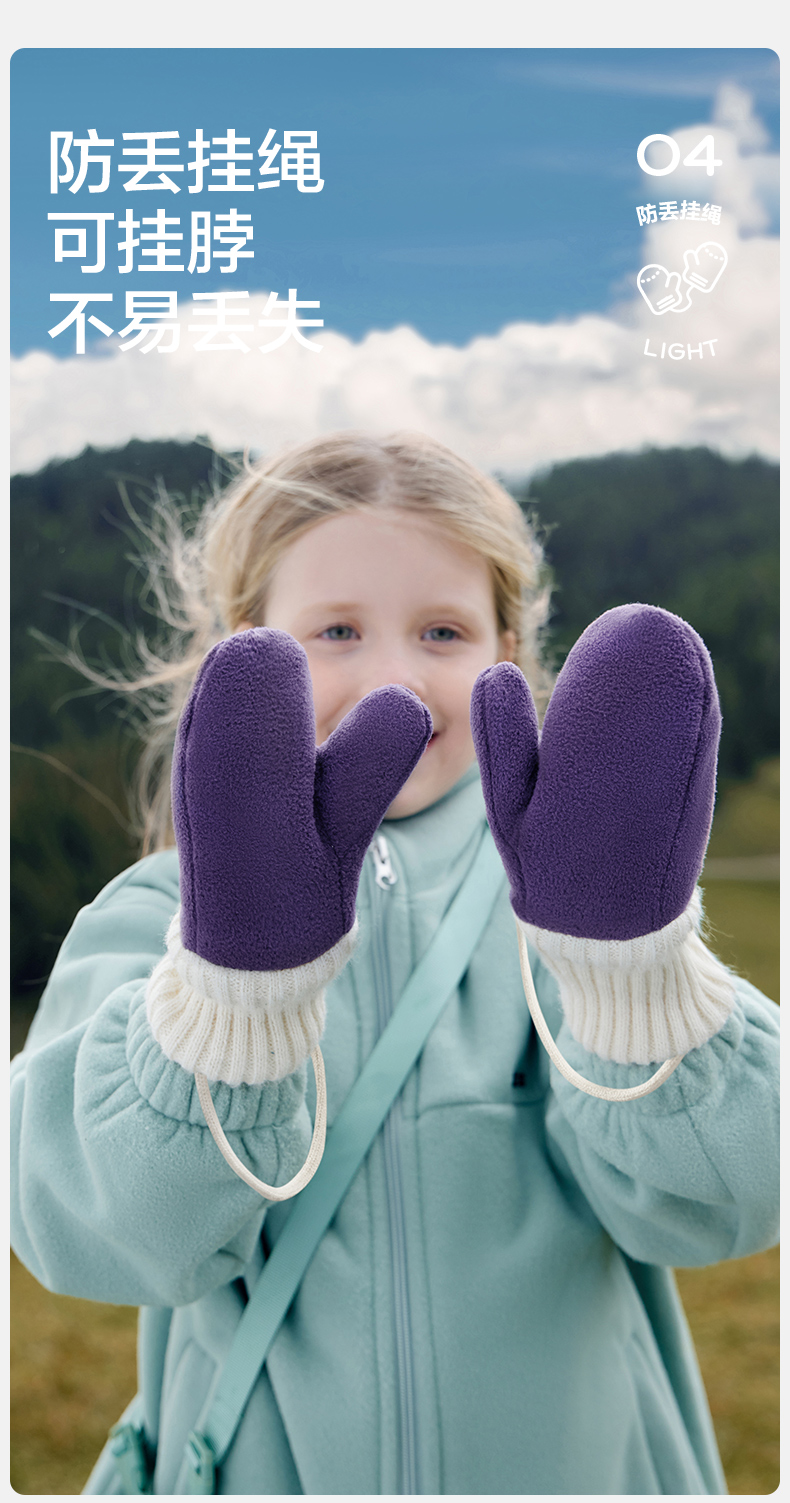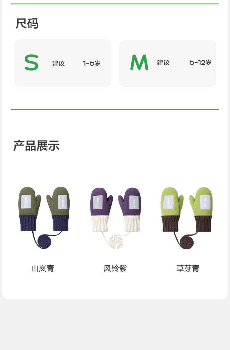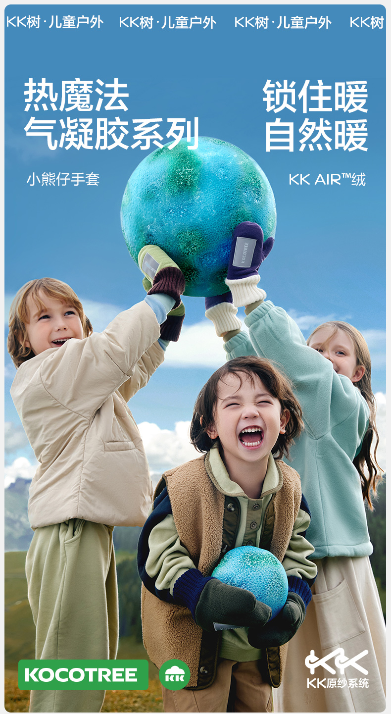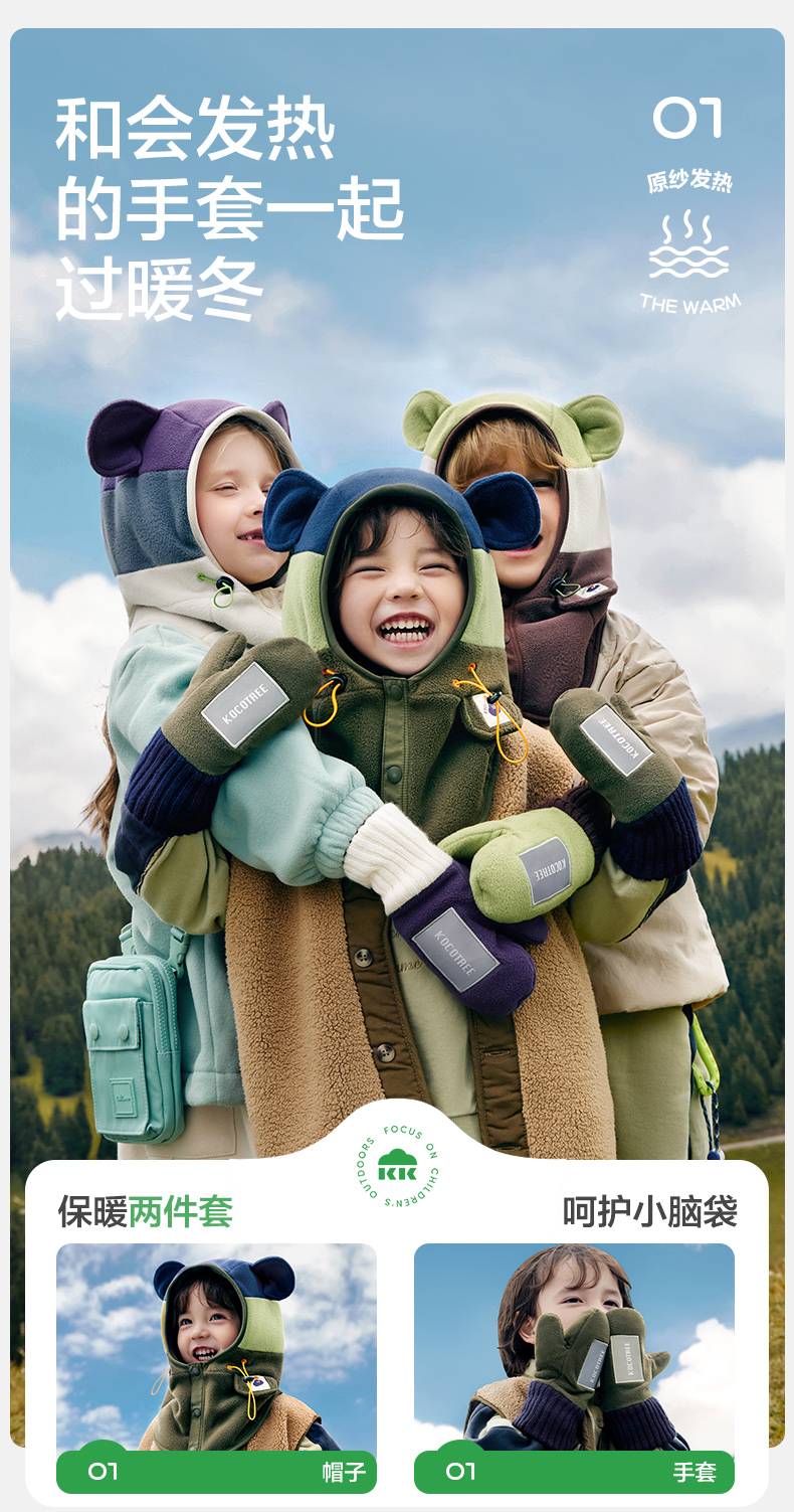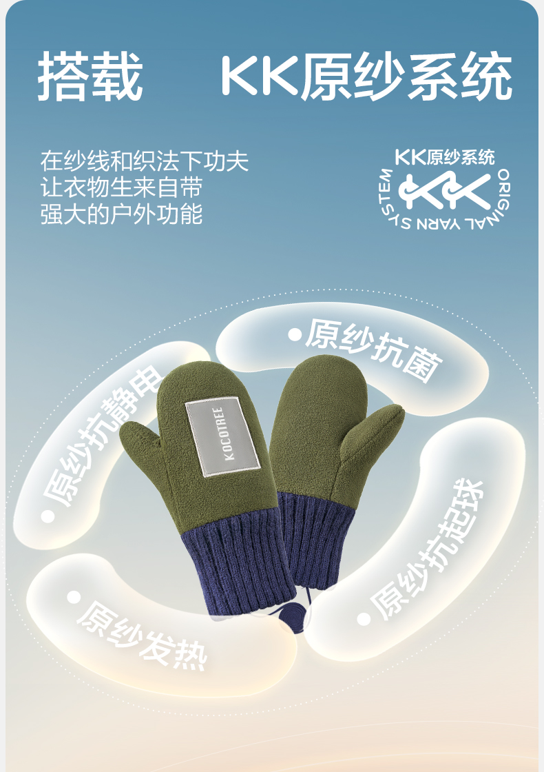 商品名称:【直供】KK树原纱儿童手套冬天宝宝连指秋季小学生A类保暖抗静电小熊仔手套