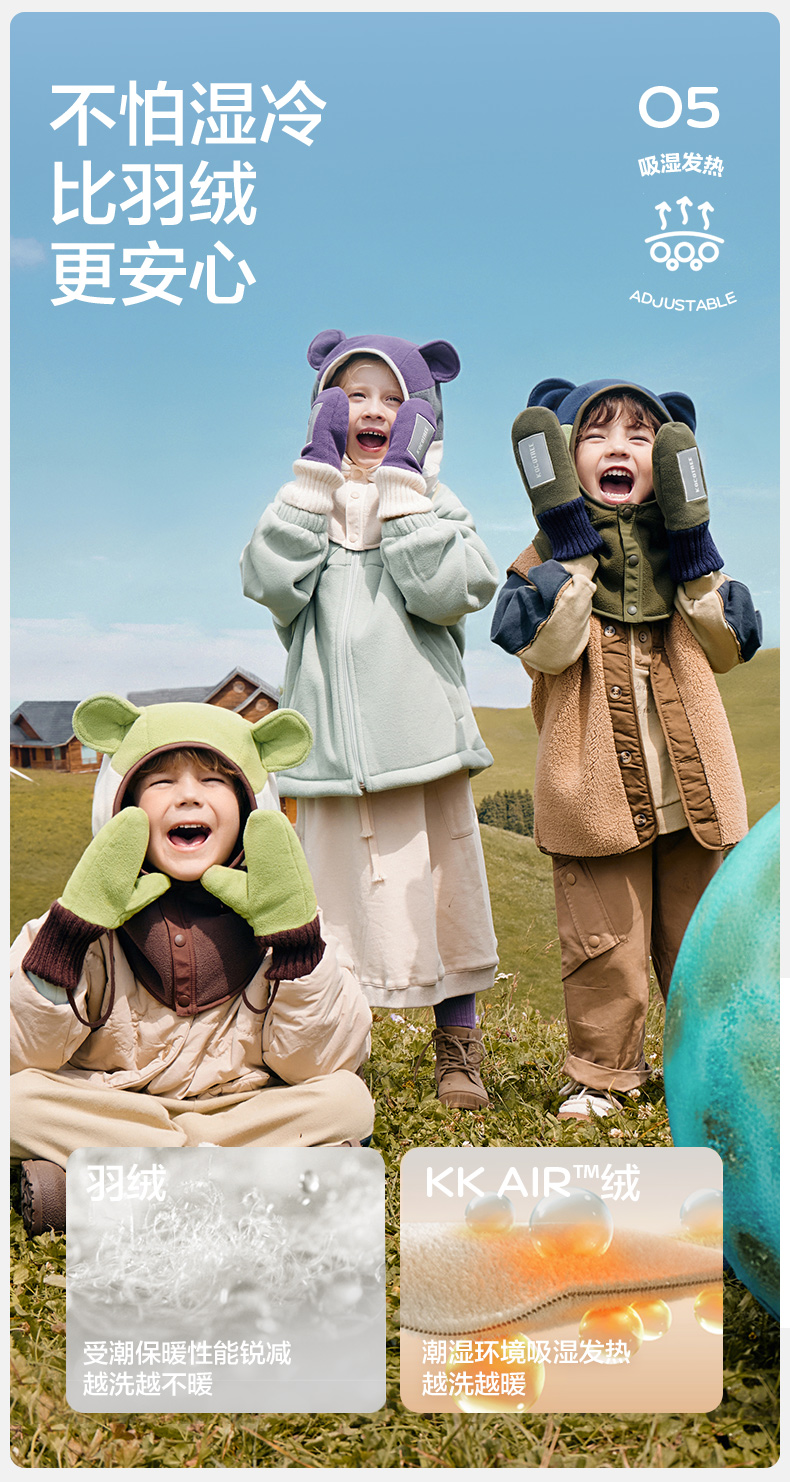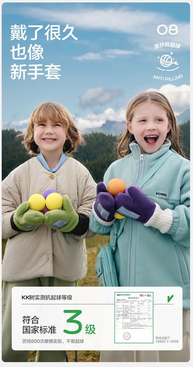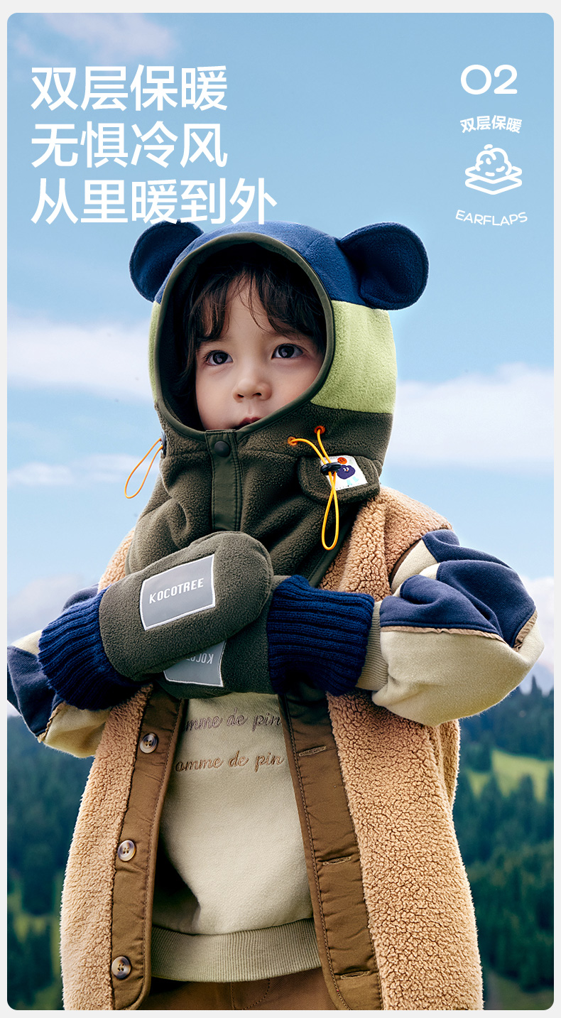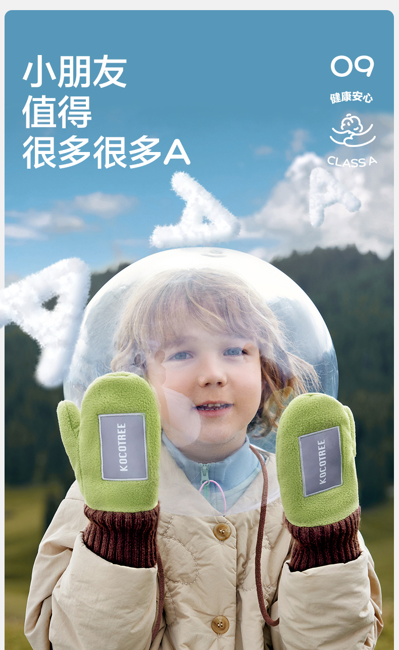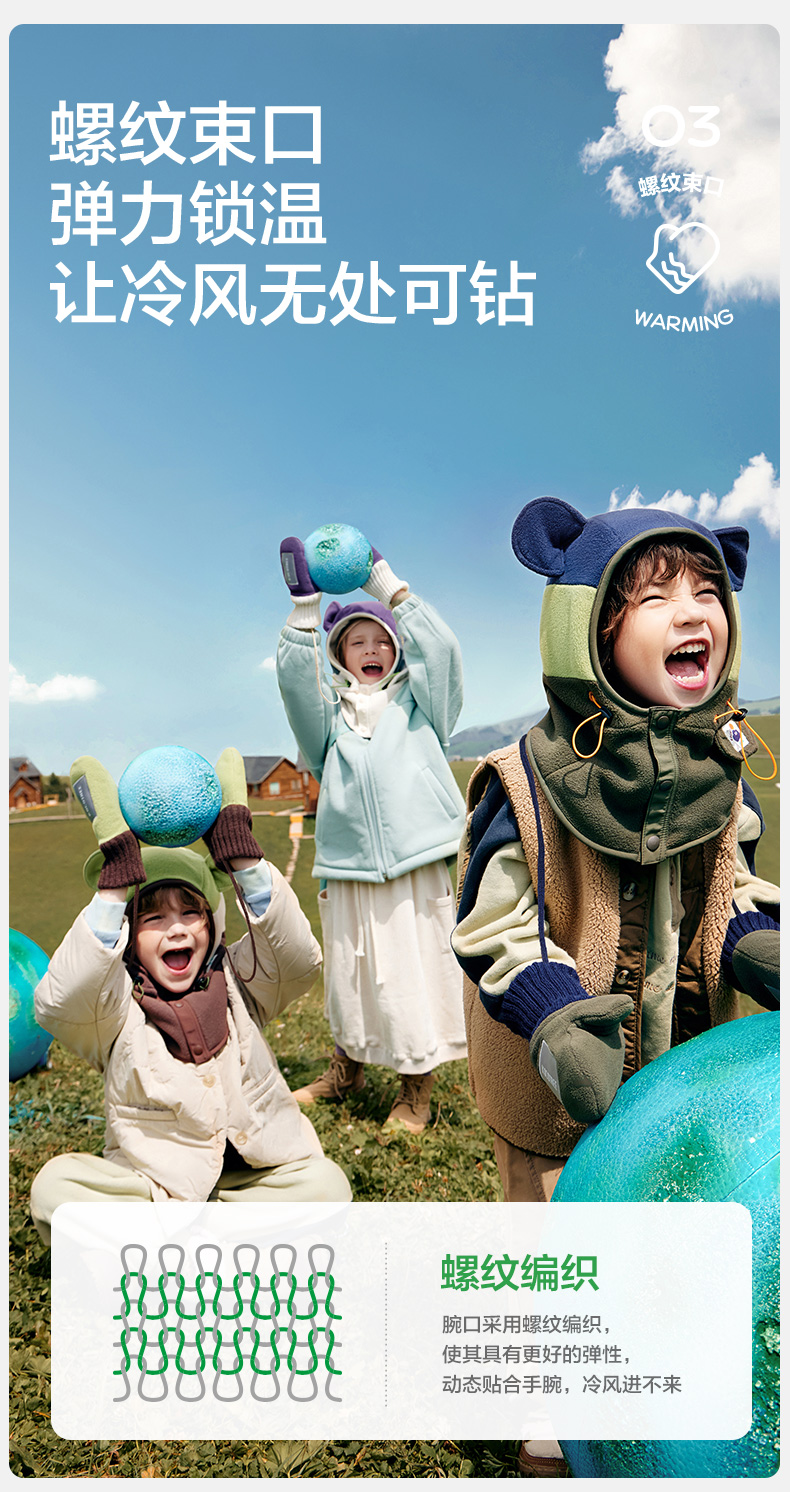 商品名称:【直供】KK树原纱儿童手套冬天宝宝连指秋季小学生A类保暖抗静电小熊仔手套