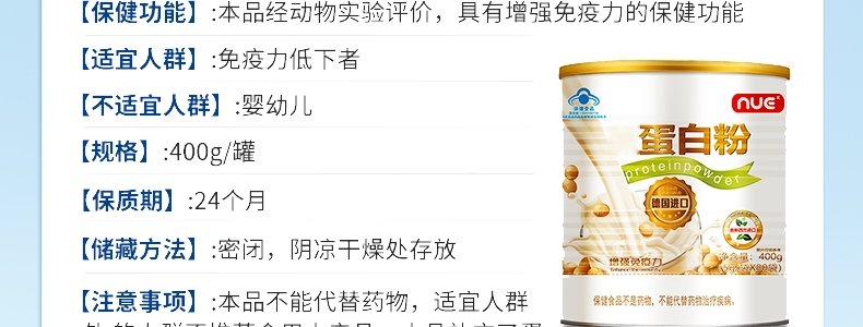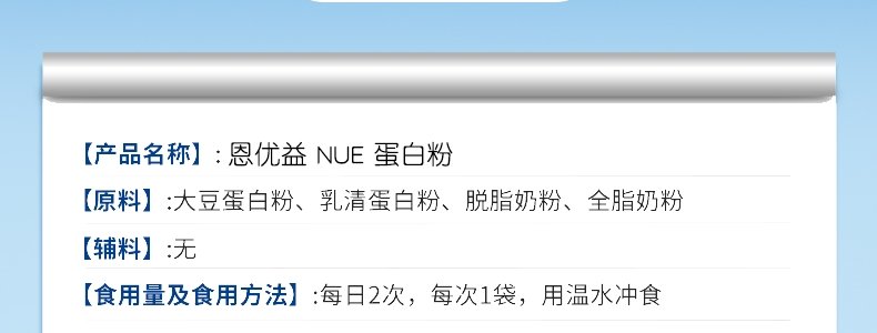 商品名称:恩优益( NUE MCKIN )蛋白粉 400g/罐