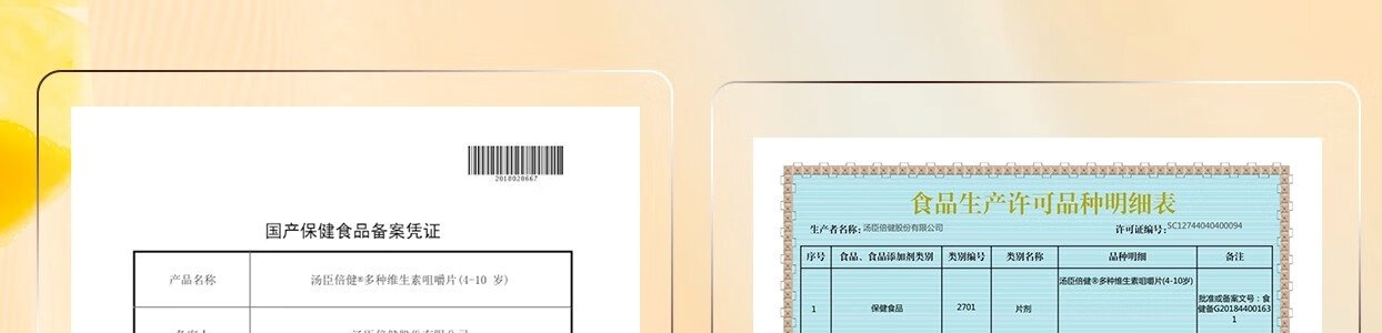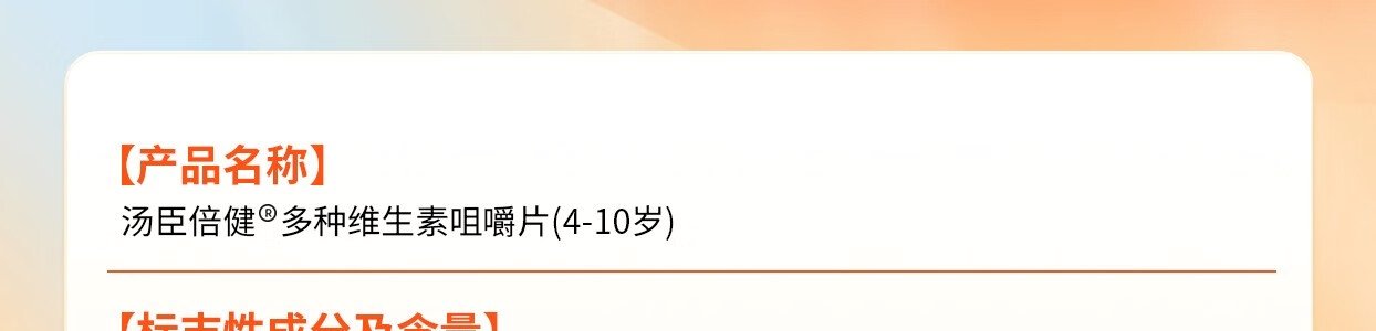 商品名称:汤臣倍健(BYHEALTH)多种维生素咀嚼片 超级飞侠装 60片*2瓶 4-10岁