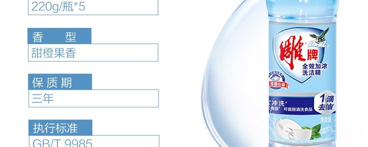 商品名称:雕牌 全效加浓洗洁精 220g*5瓶