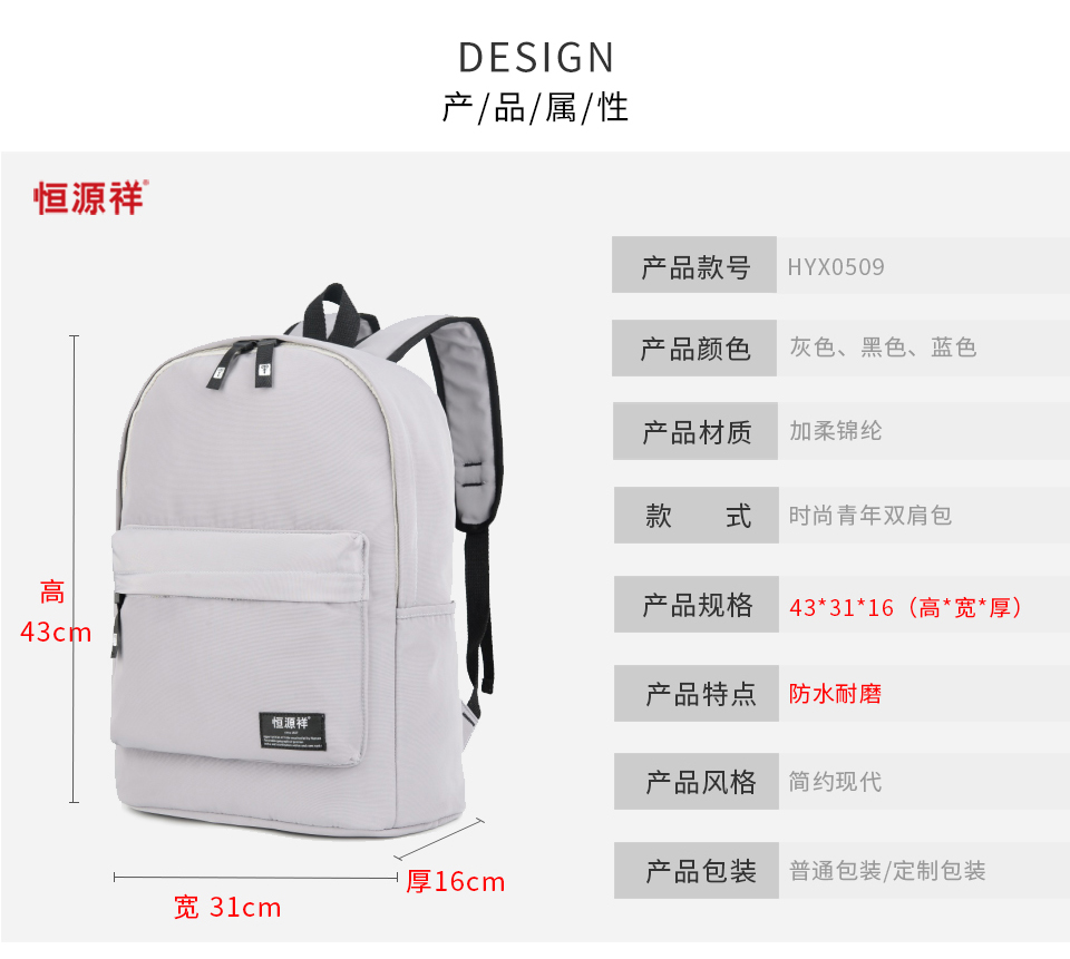 商品名称:恒源祥(HYX0509) 时尚青年双肩包43*31*16