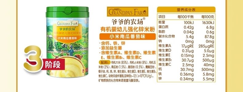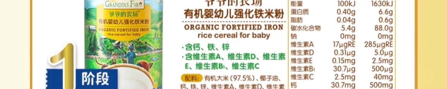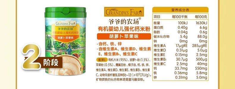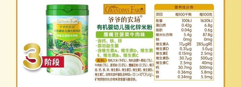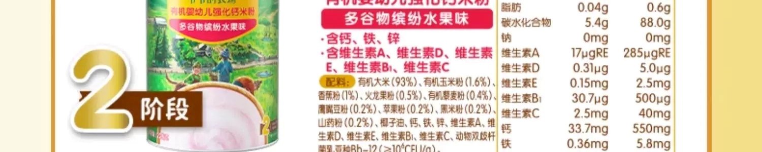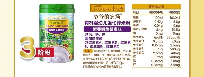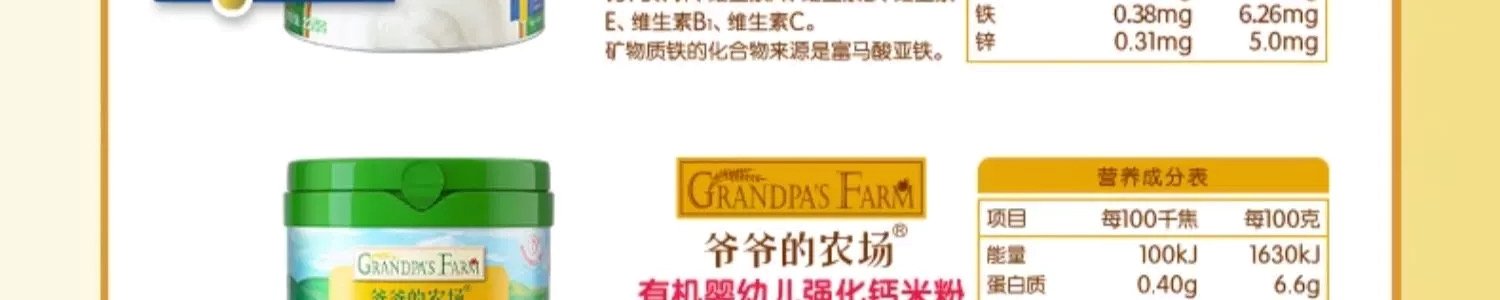 商品名称:爷爷的农场 营养米粉4口味组合(菠菜牛肉+缤纷水果+紫薯鳕鱼+红枣黑米)225g*4罐