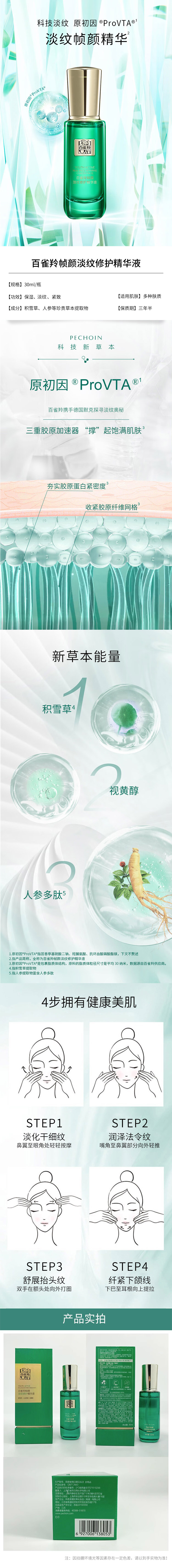 商品名称:PECHOIN/百雀羚草本帧颜淡纹修护精华液30ml