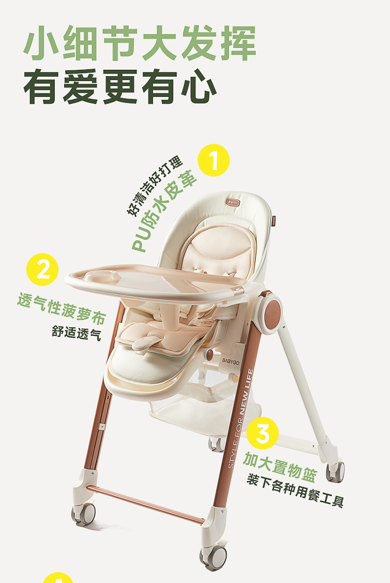 商品名称:BABYGO果壳餐椅宝宝吃饭餐桌椅婴儿家用可坐躺便携多功能学坐椅