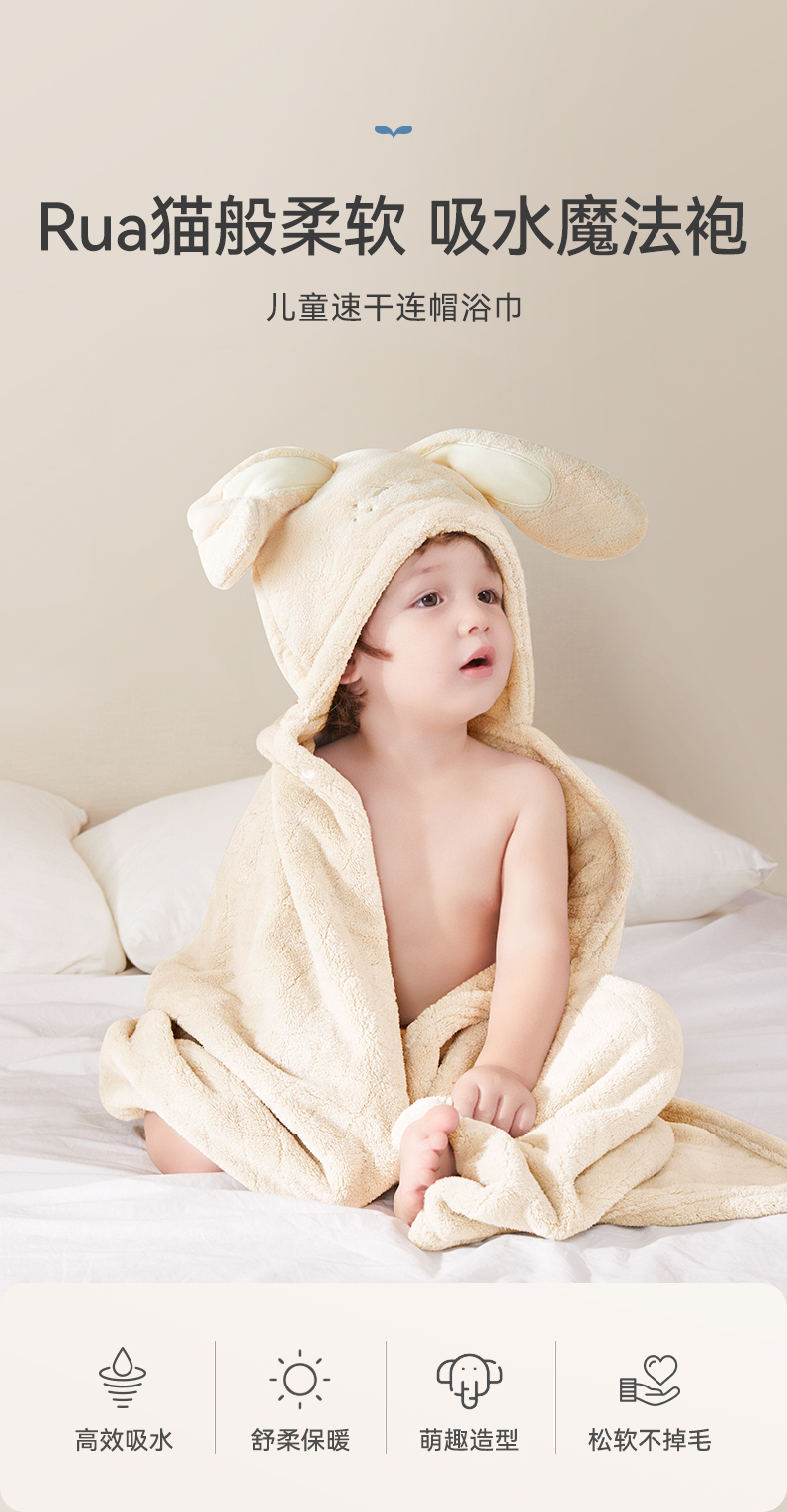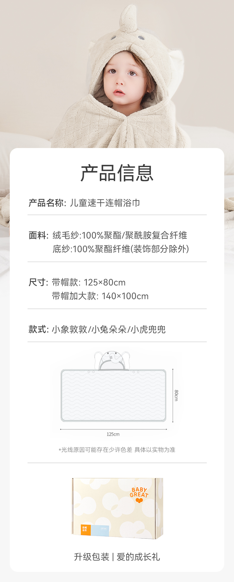 商品名称:【VS专供,勿给门店】babygreat婴儿浴巾斗篷儿童浴袍带帽初生宝宝裹巾吸水速干四季