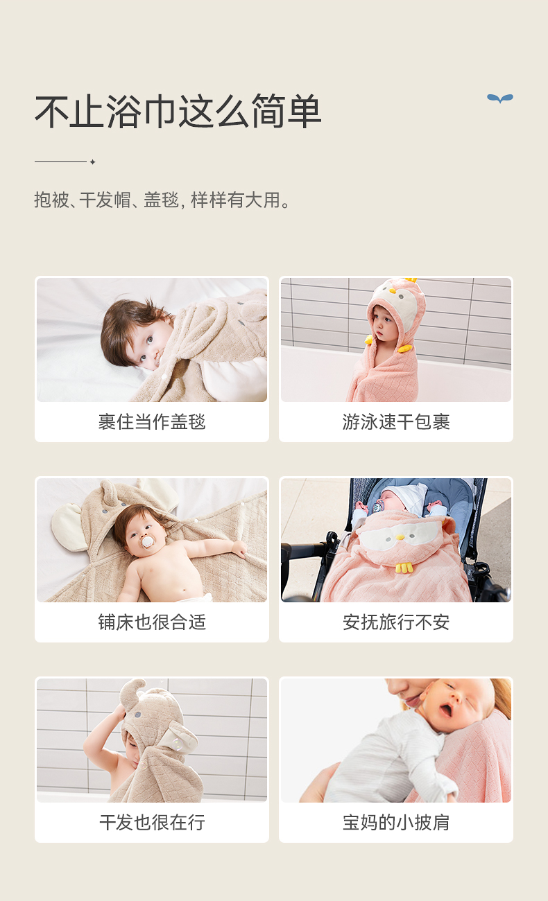【VS专供,勿给门店】babygreat婴儿浴巾斗篷儿童浴袍带帽初生宝宝裹巾吸水速干四季