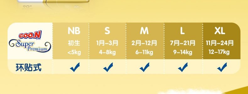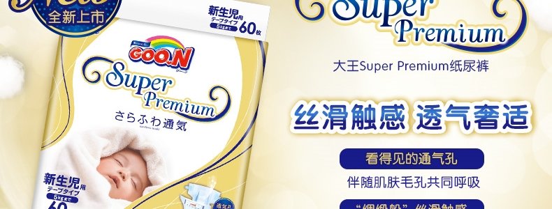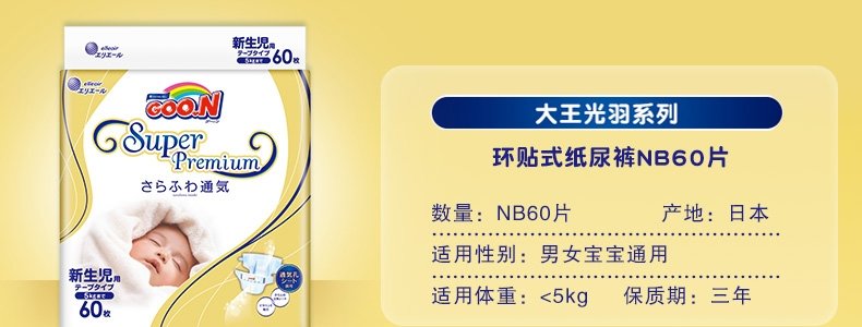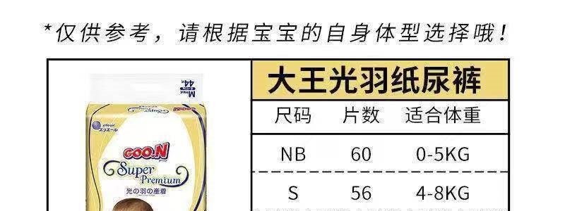 商品名称:日本 大王(GOO.N)光羽系列纸尿裤 S1*36片/箱(4-8kg) 试用装