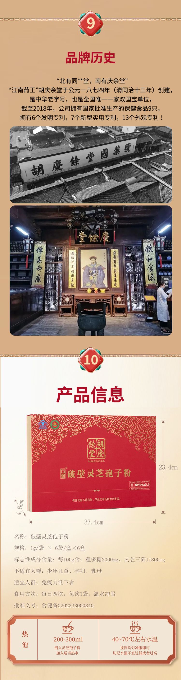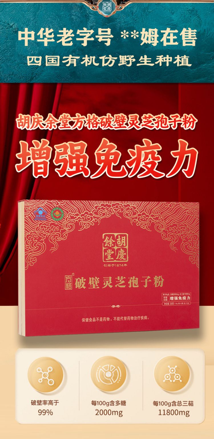 商品名称:(商超同款送礼袋)胡庆余堂破壁灵芝孢子粉36袋礼盒 营养保健滋补探病增强免疫力高含量