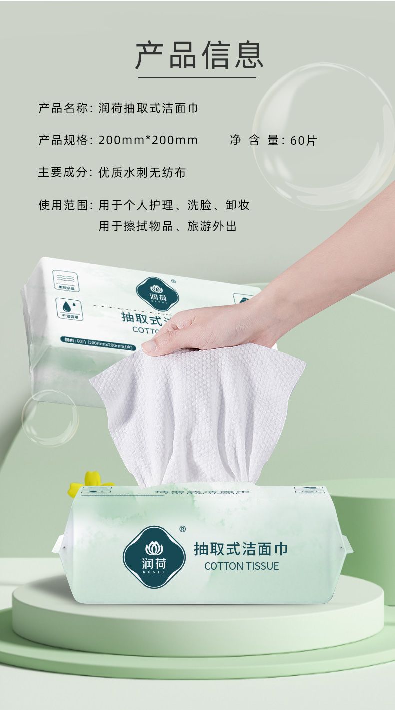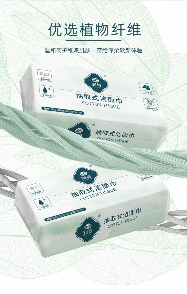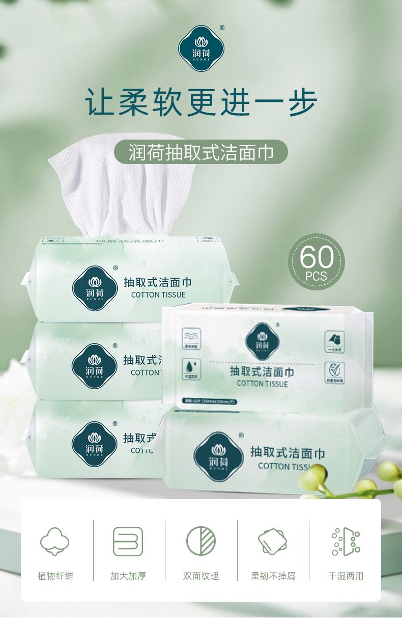 商品名称:润荷一次性干湿两用棉柔巾60抽/包*5包