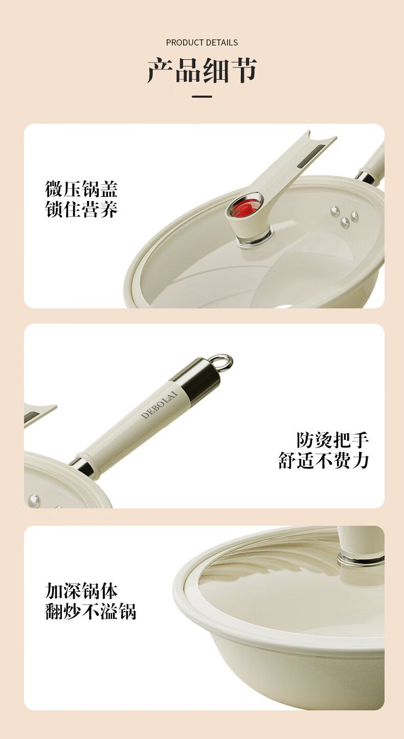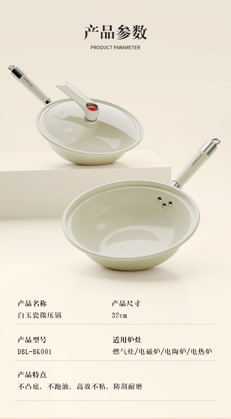 商品名称:德博莱白玉瓷微压炒锅DBL-BK001