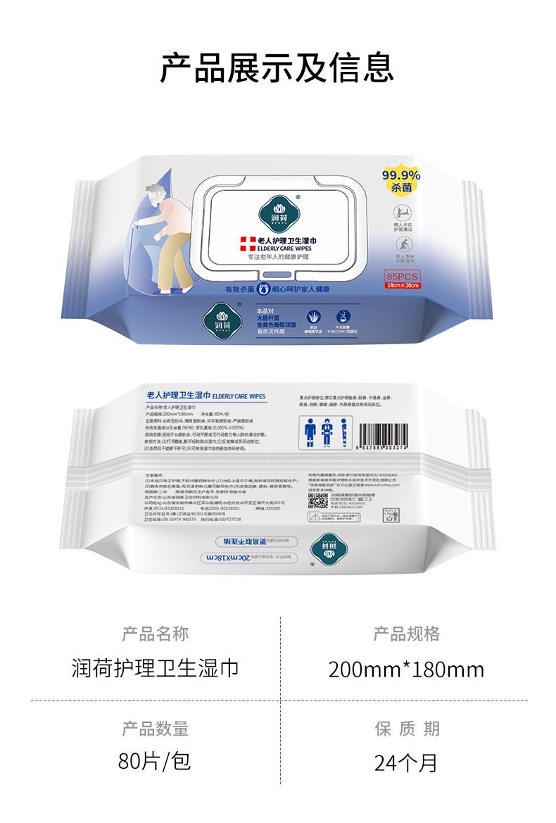 商品名称:润荷老人护理卫生湿巾85片/包*4包