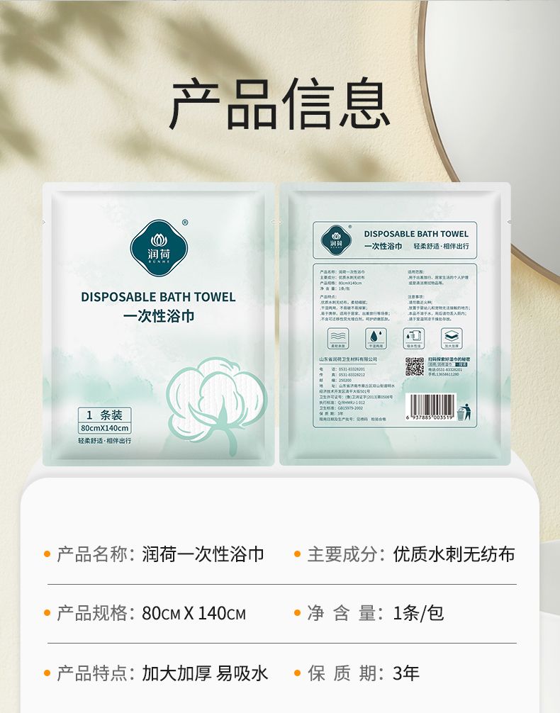 商品名称:润荷一次性加大加厚便携浴巾1片/包*3包
