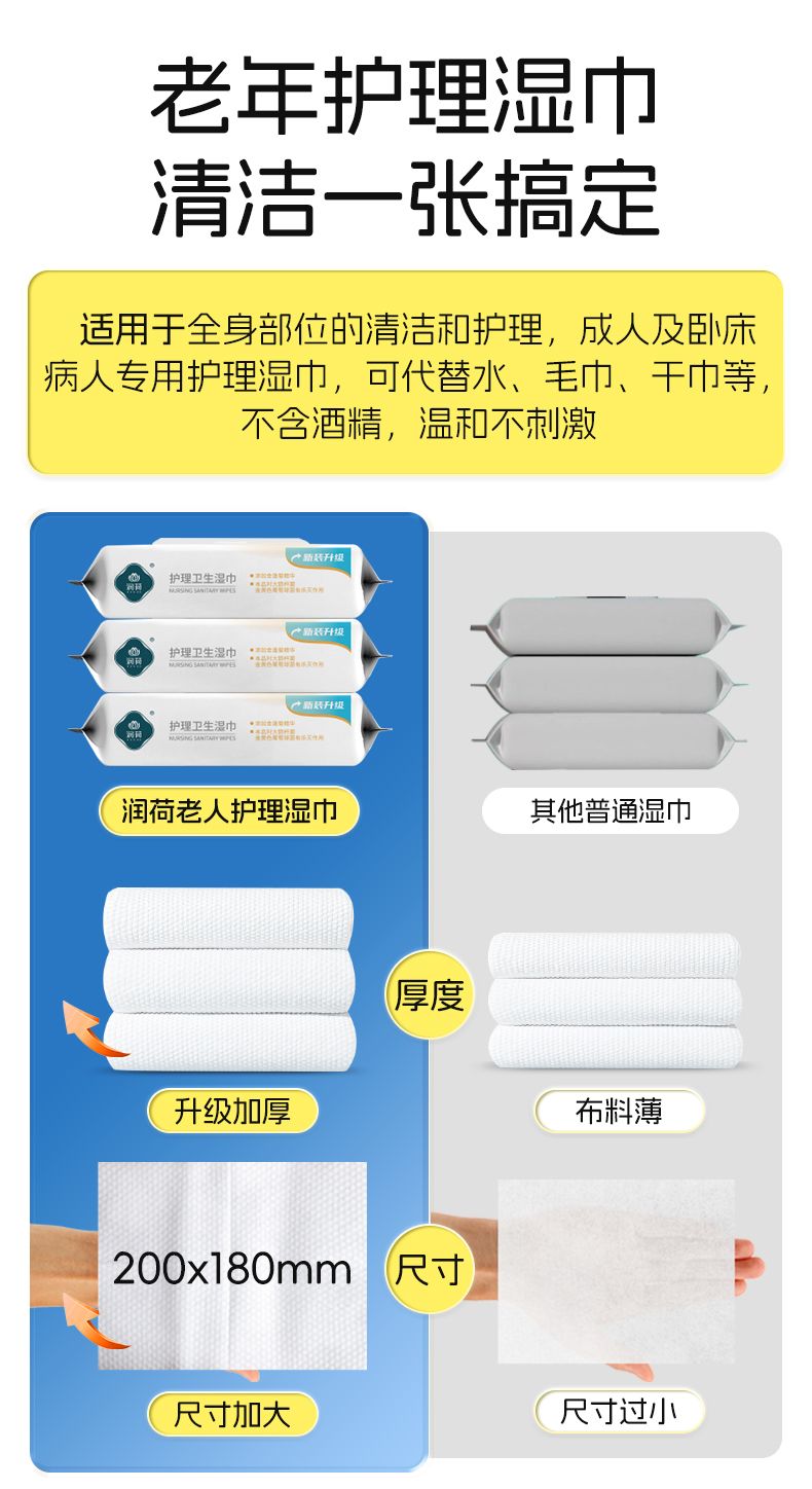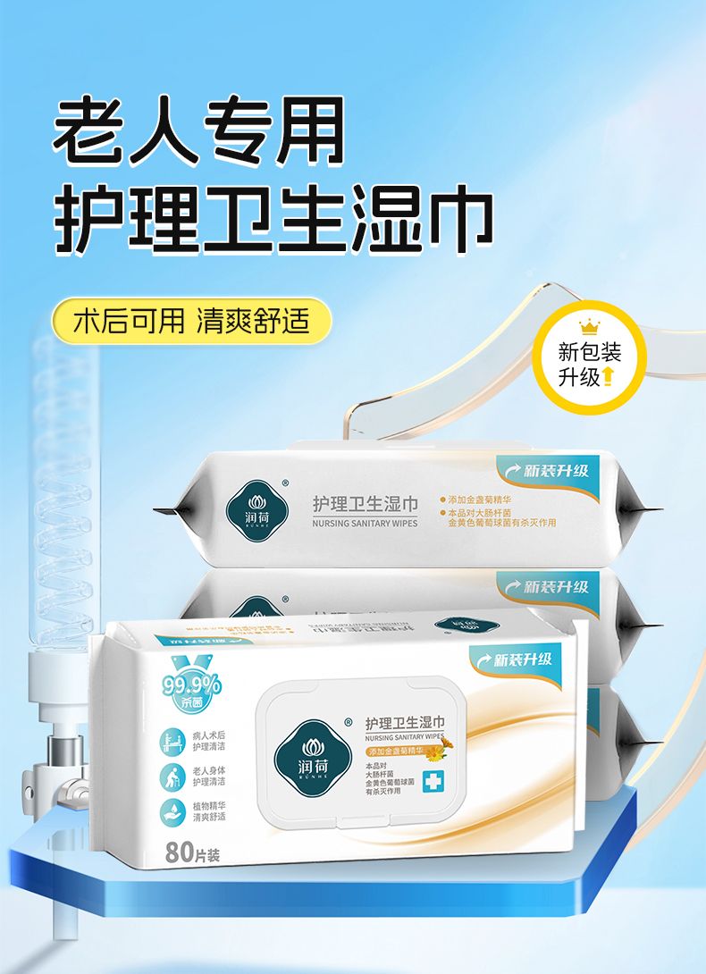 商品名称:润荷老人护理卫生湿巾0酒精(金盏菊)80片/包*2