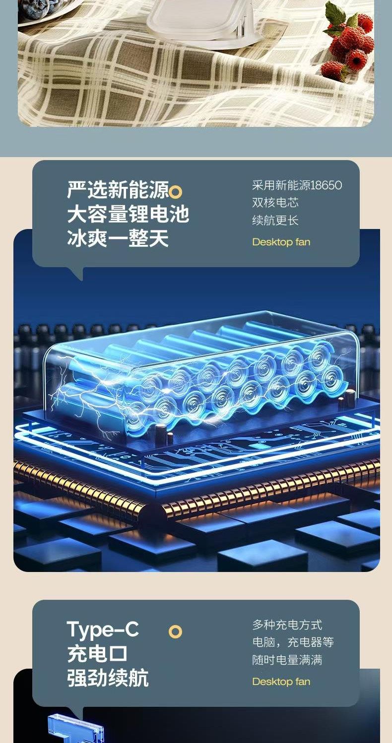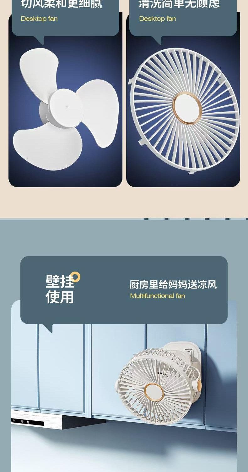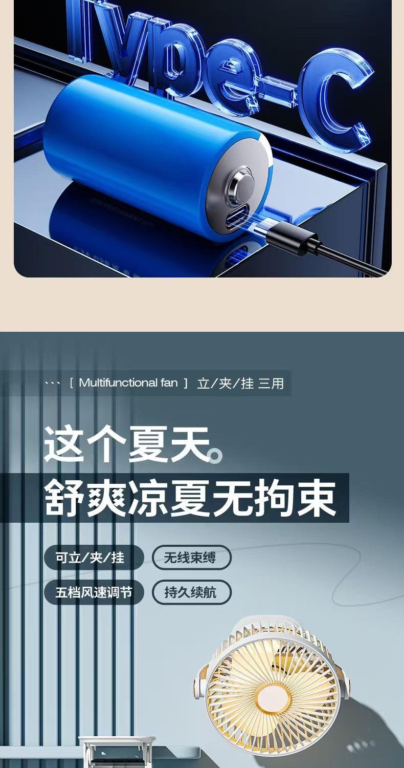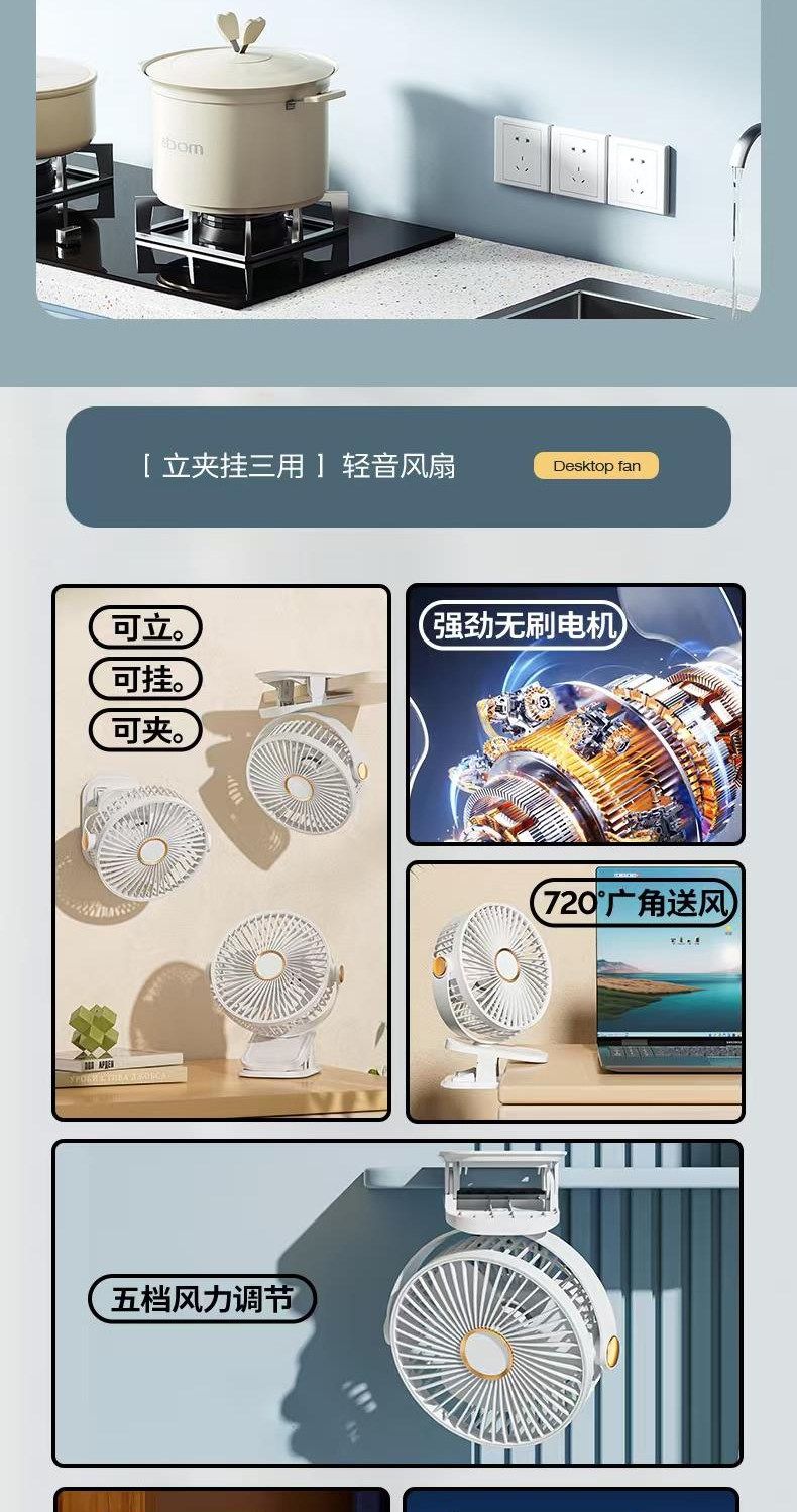 商品名称:格卡诺夹式风扇宿舍静音制冷小风扇USB直插款桌面夹扇大风力白色充电款带灯光