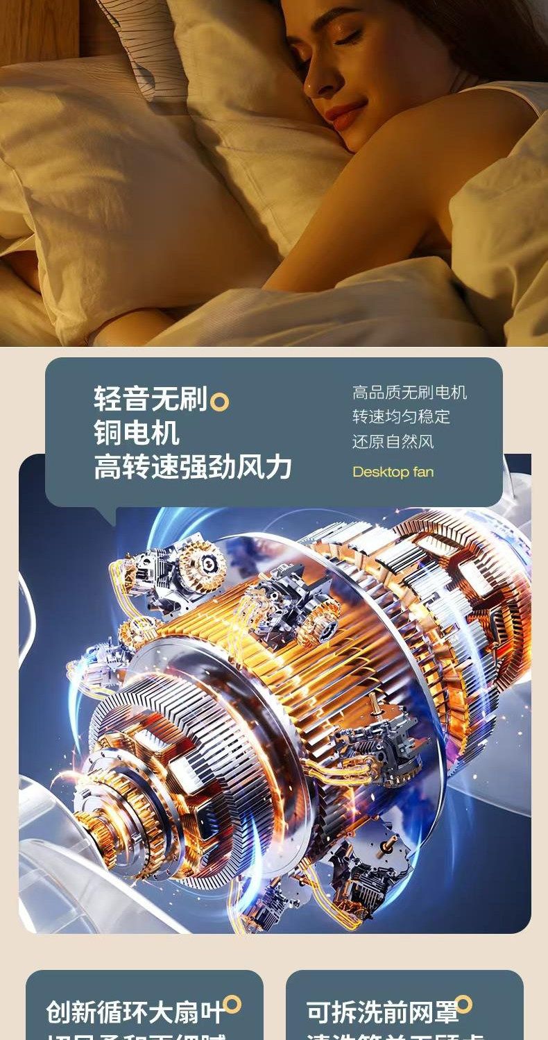 格卡诺夹式风扇宿舍静音制冷小风扇USB直插款桌面夹扇大风力白色充电款带灯光