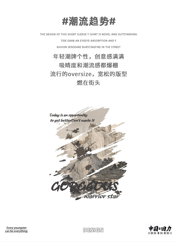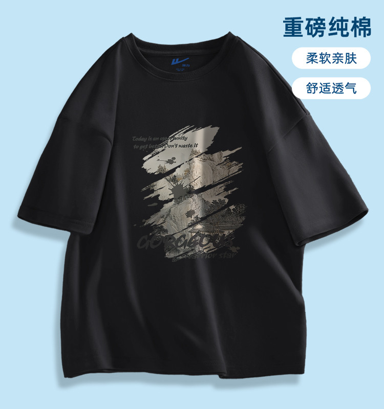 商品名称:【220克】国潮短袖男夏季纯棉t恤男款潮流加大码男士运动上衣 296723