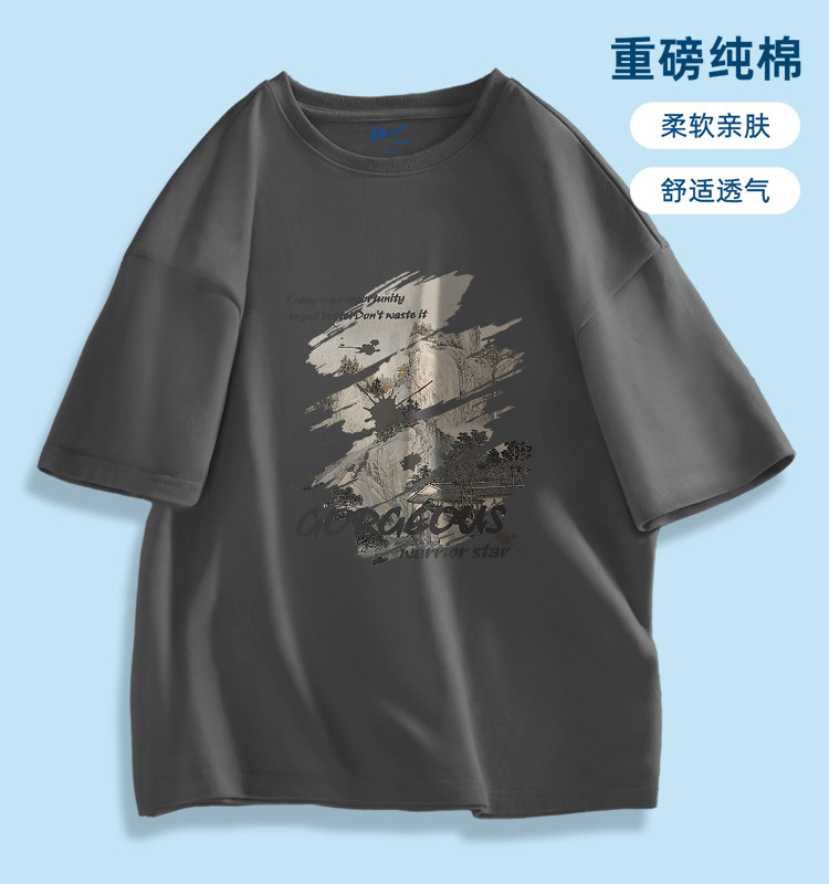 【220克】国潮短袖男夏季纯棉t恤男款潮流加大码男士运动上衣 296723