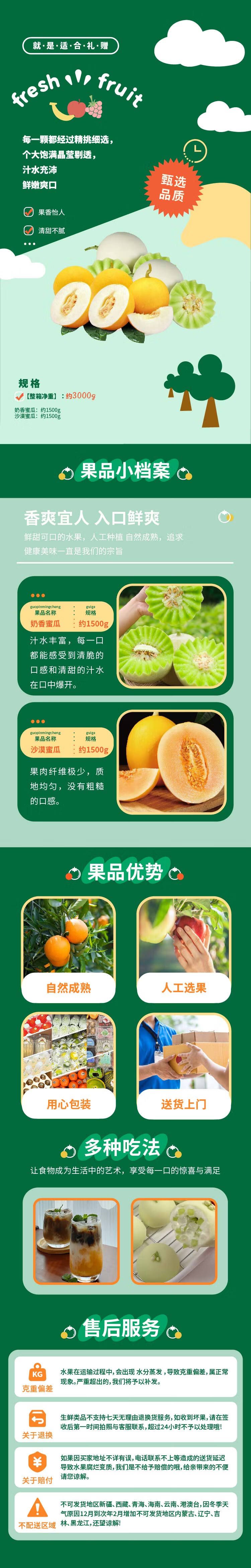 商品名称:【应季水果】甜沁双瓜礼盒奶香/沙漠蜜瓜双搭礼盒装约3kg【销售周期4月1日至6月30日】顺丰/京东
